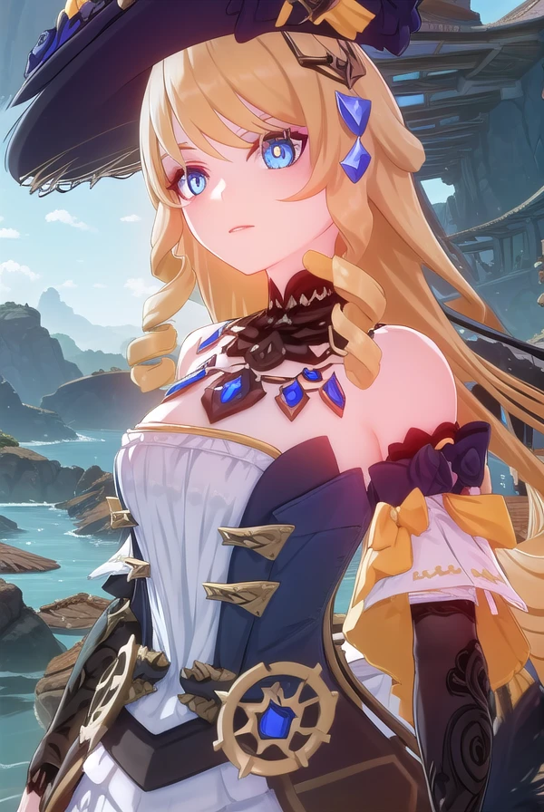 navia, long hair, blue eyes, blonde hair, drill hair,