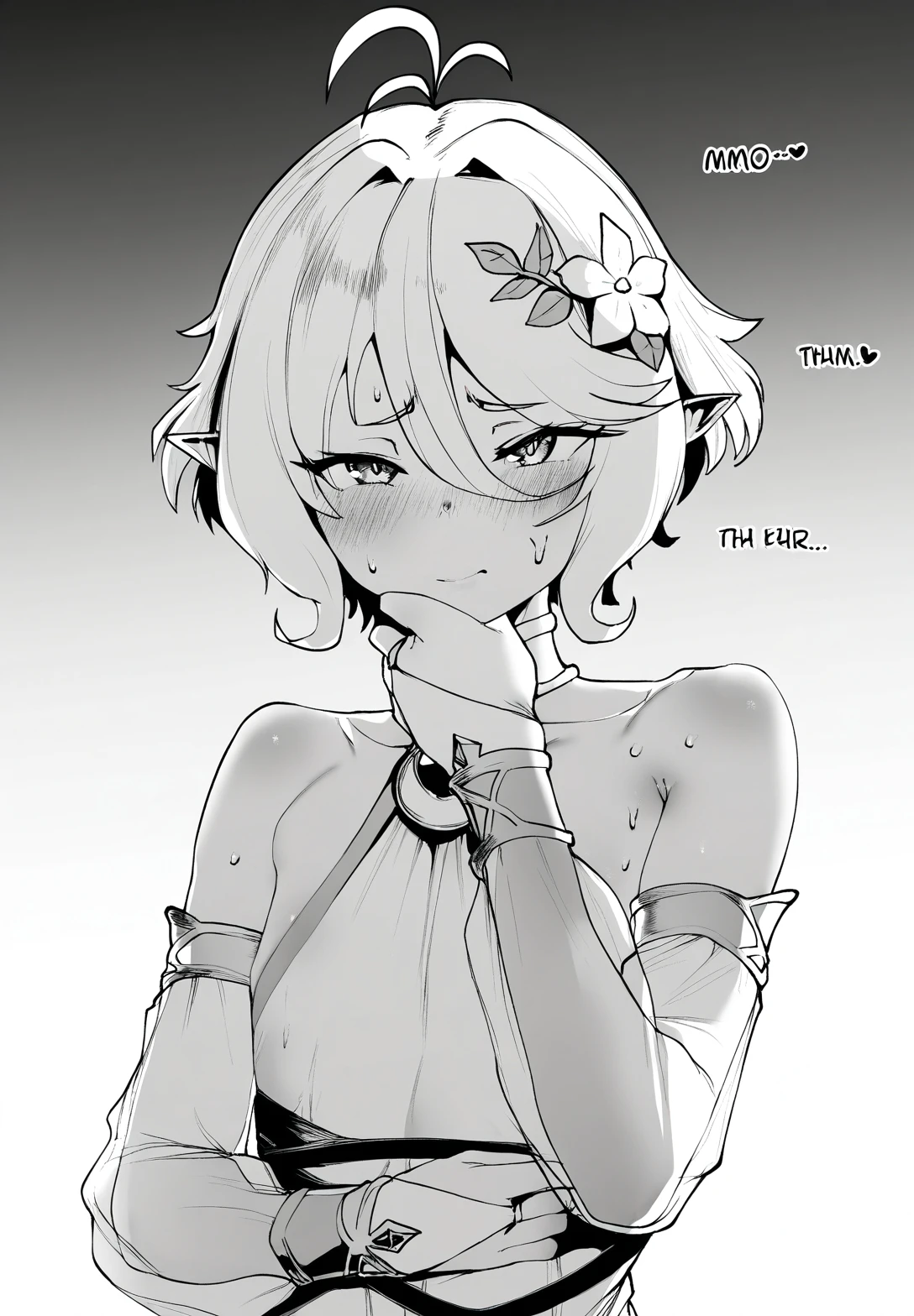 1girl,flat ,elf,pointy ears,short hair,antenna hair,bangs,hair between eyes,