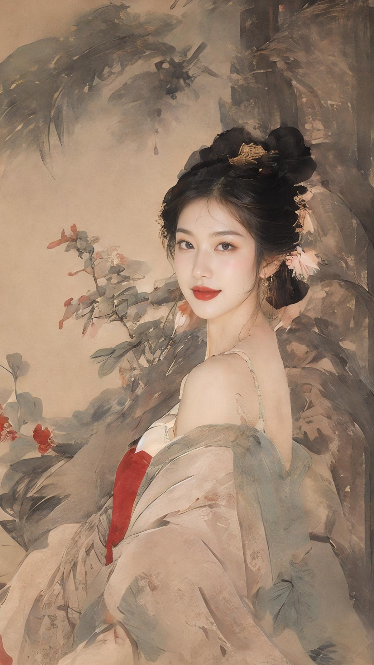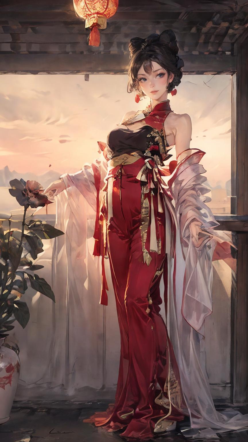 推荐关键词: 1 girl, daji, red dress, chinese clothes, bare shoulders, pink earrings
