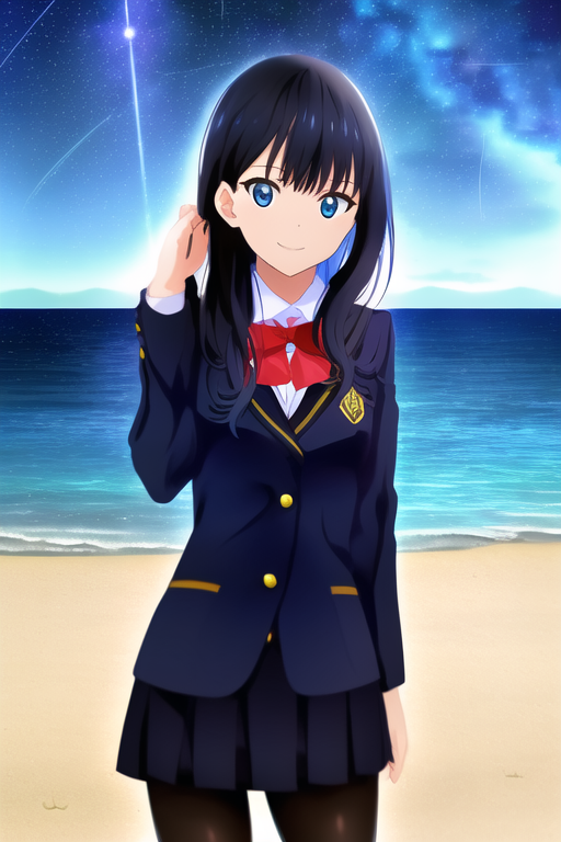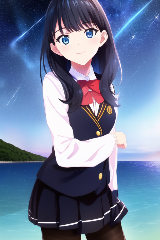 加上takarada rikka,(black hair:1.2), (blue eyes:1.2), long hair, 更好一些
