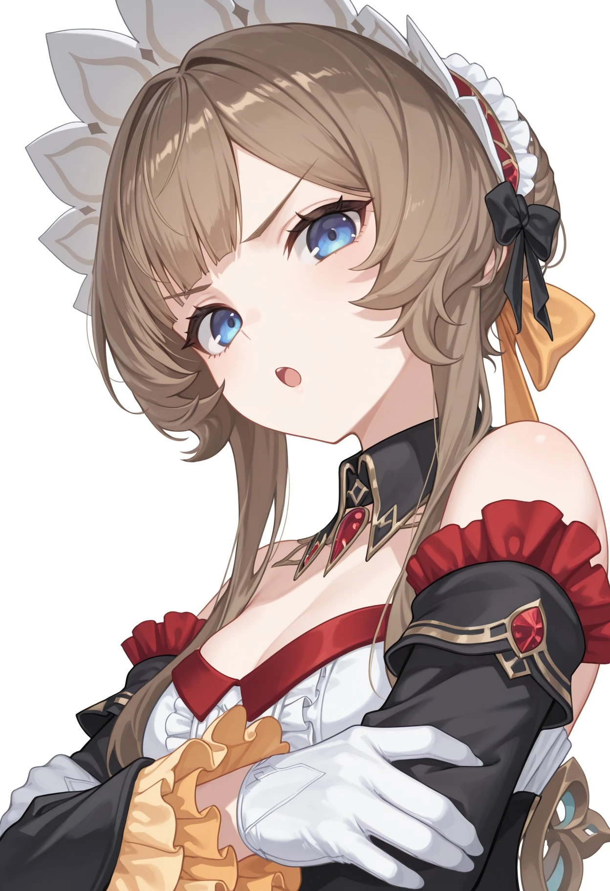 sdbase, bonnet, detached sleeves, wide sleeves, frilled sleeves, detached collar, frills, detached dress, white gloves, white pantyhose, shoes