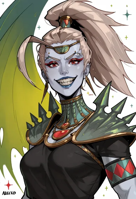 Alecto will probably be generated with her normal clothing, here is the prompt if you really need it: