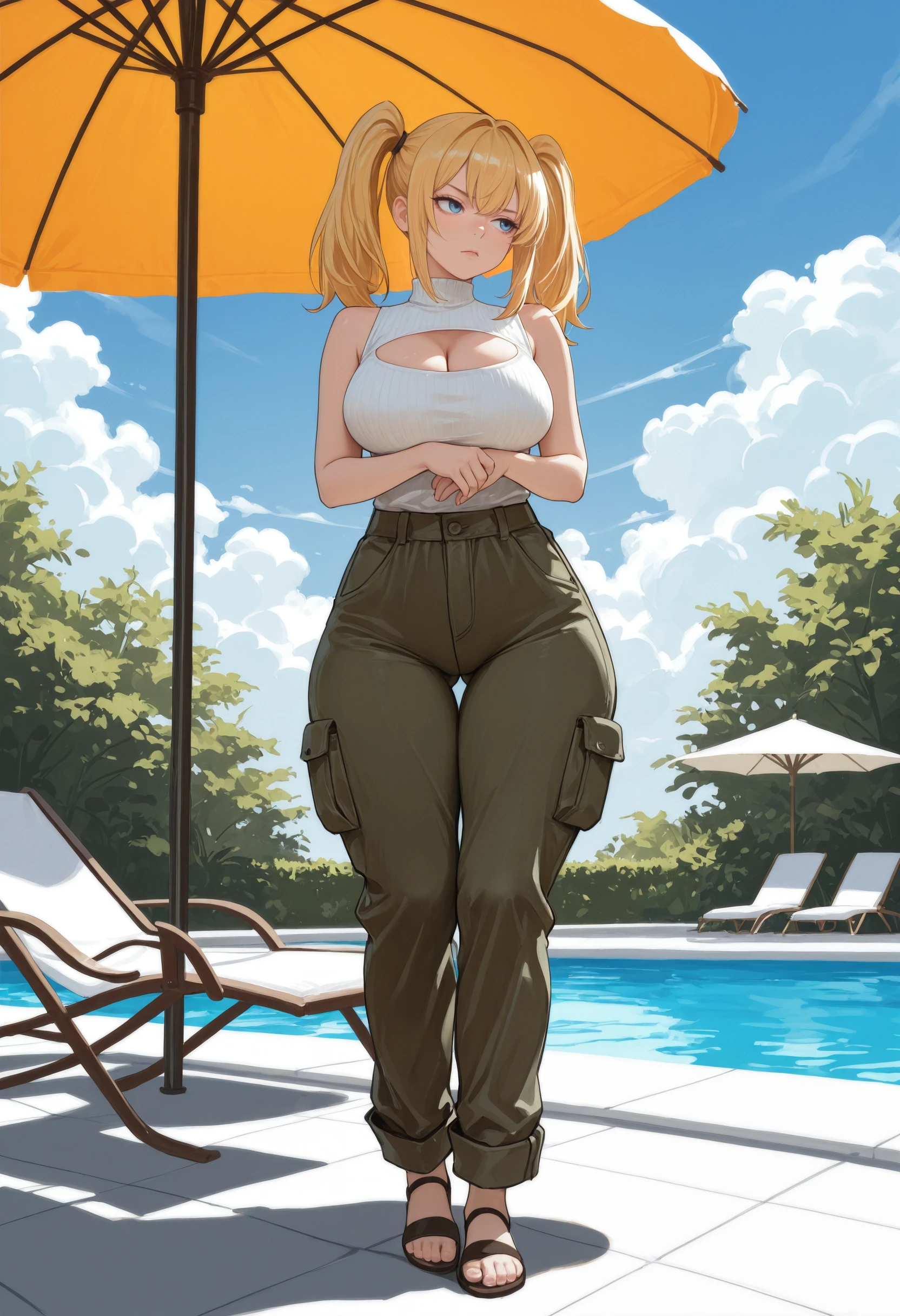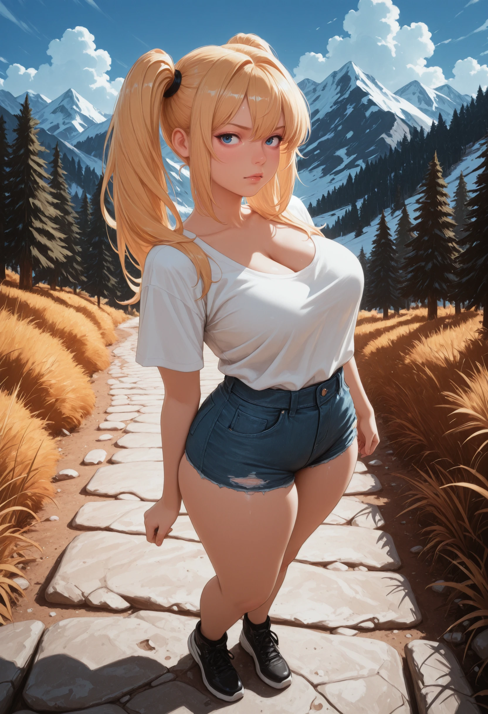 (Positive Prompts) anix, blue eyes, long hair, twintails, sidelocks, hair intakes, hair between eyes, blonde hair, large breasts,
