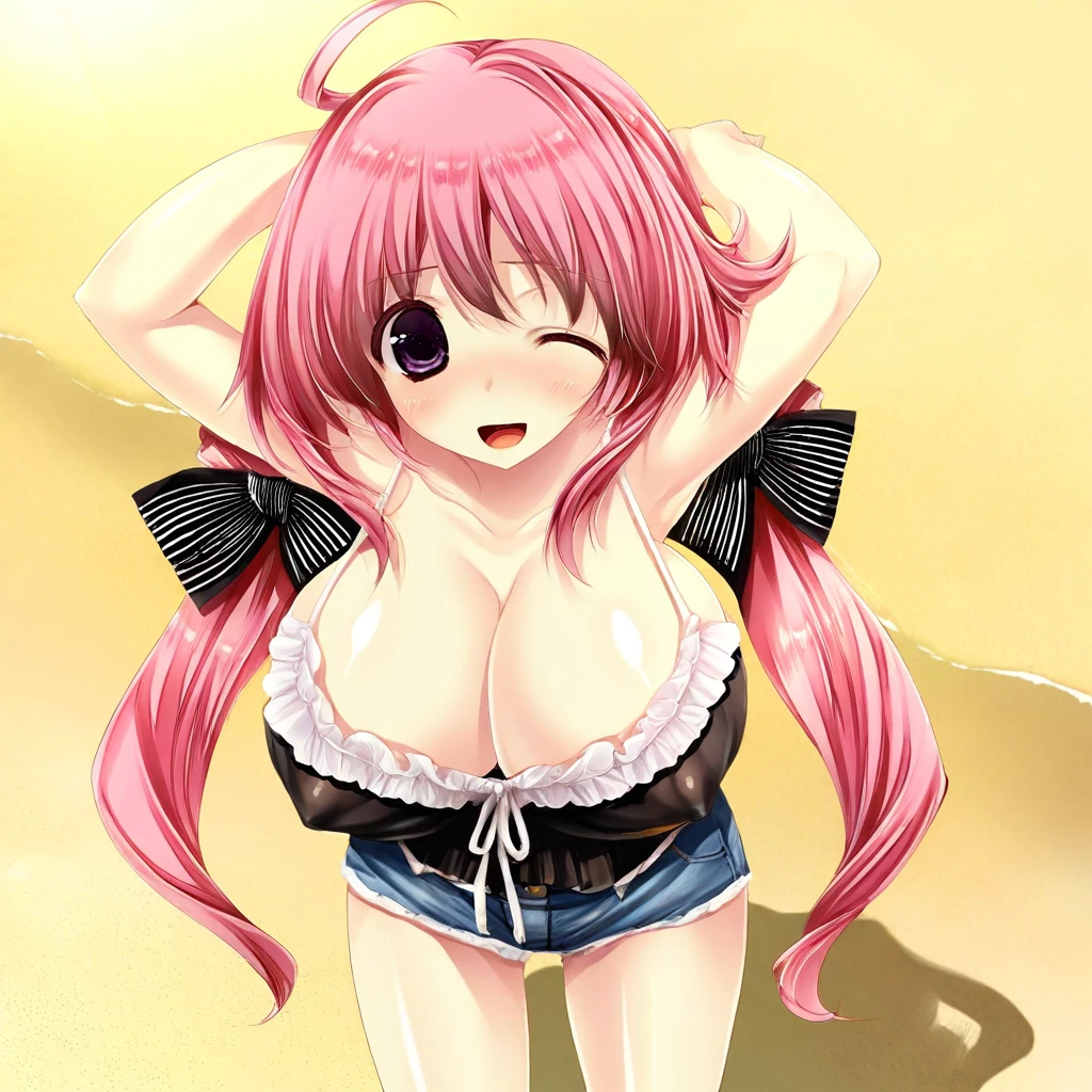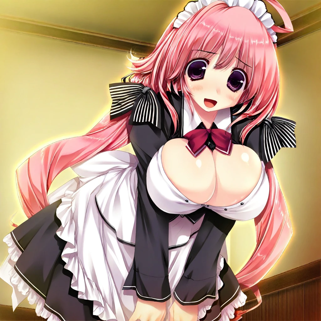 Recommend Prompt:Nazuna Komachiya, purple eyes, pink hair, long hair, ahoge, low twintails, hair ribbon,