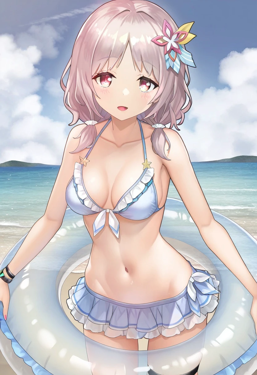 pink hair, hair accessory, red eyes,Please choose your attire from the following.