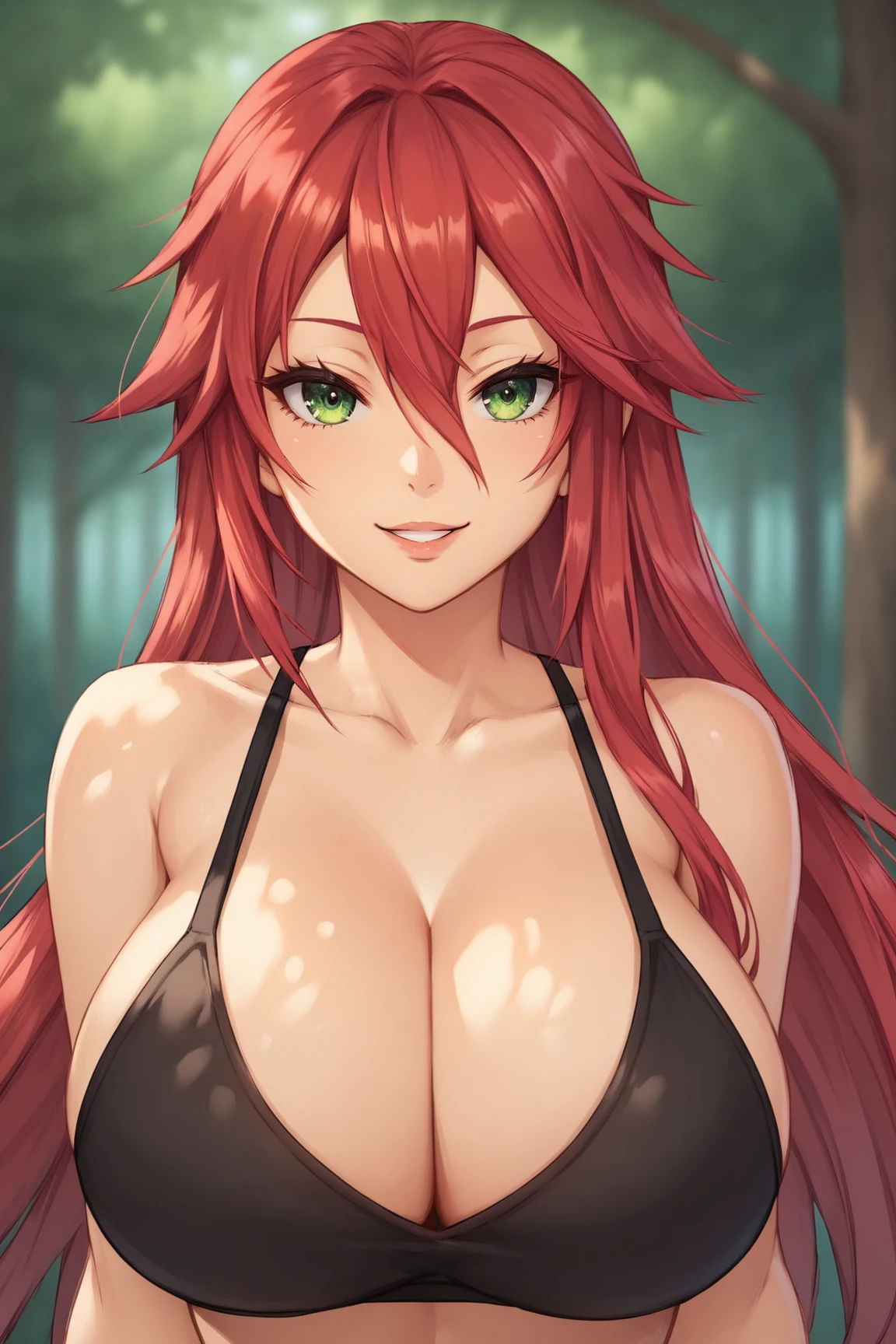 ➜ MichelleTTPXL, green eyes, red hair, long hair, hair between eyes, huge breasts, cleavage, black swimsuit, black thighhighs, black shoes]--|======[ 💗 My Settings: 💗 ]======|--[