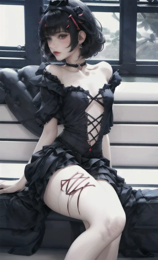 It is a concept for piercing leg with ribbon. I think this style of fashion is so beautiful and attracts my eyeball. Have fun!