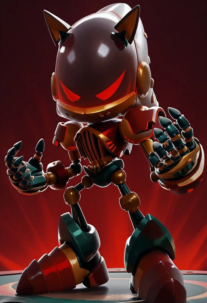 Alpha Grim Sonic, dark red robot, black screen visor, red eyes, no pupils, dark red shoes