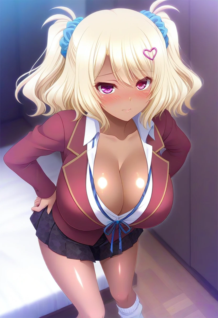 Recommend Prompt:Niko Masubuchi, pink eyes, blonde hair, medium hair, twintails, hair schrunkies, tanned skin,