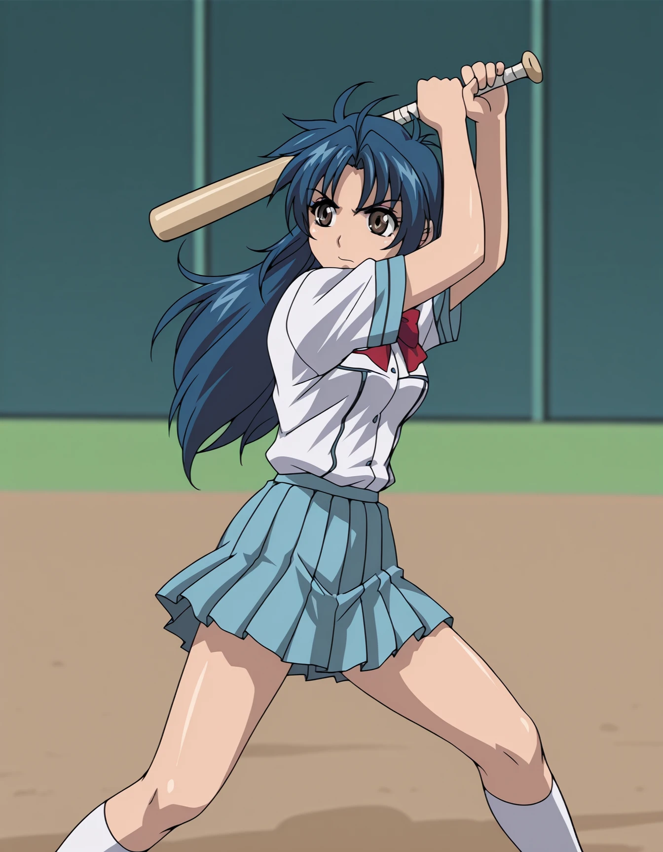 ch1d0r1, blue hair, school uniform, pleated skirt