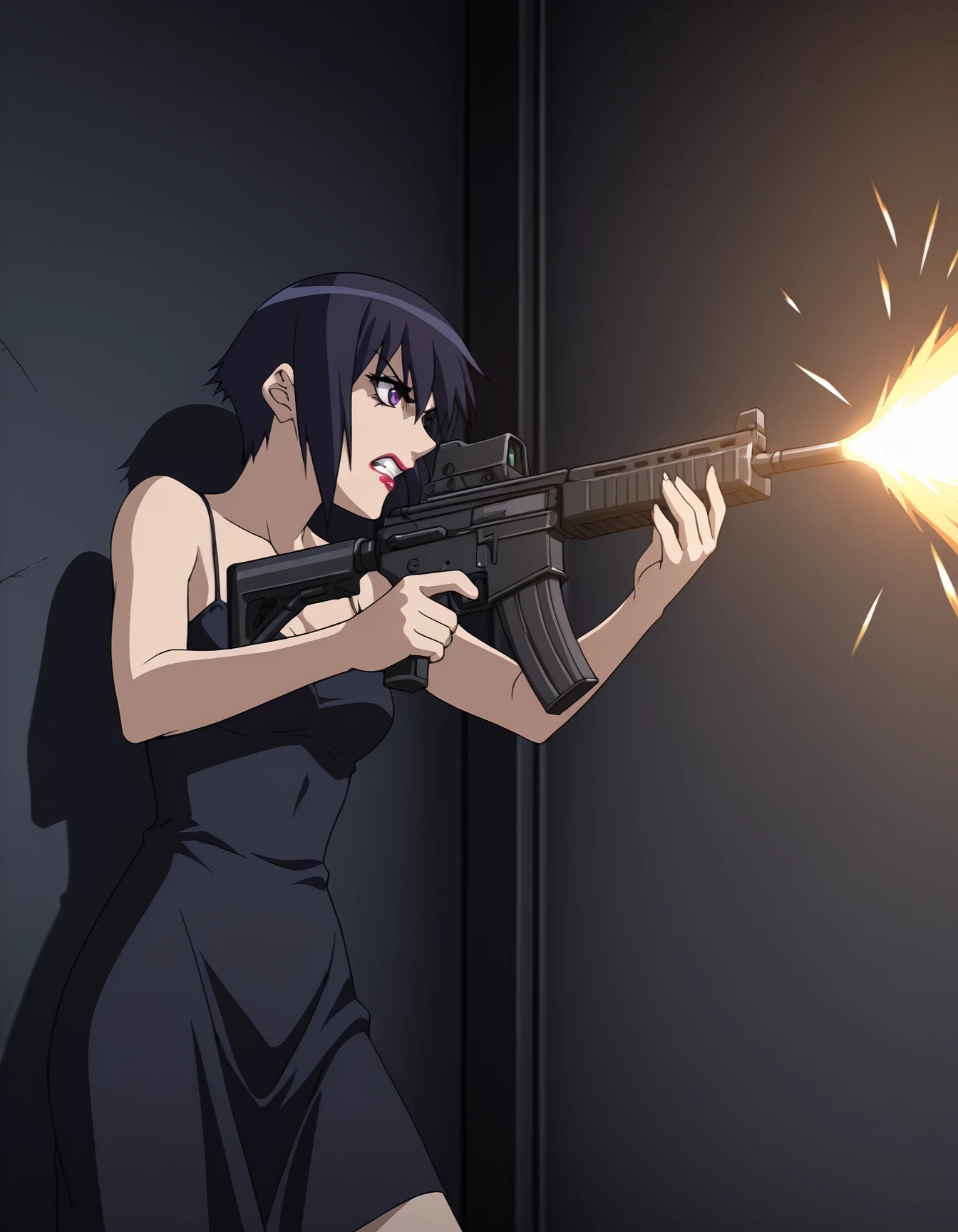 • m3l1ss4, (lipstick:0.8), black dress, spaghetti strap