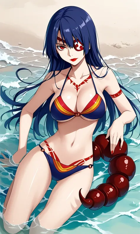 adiane_ttgl, red eyes, long hair, tattoo, makeup, eyepatch, lipstick, red lips