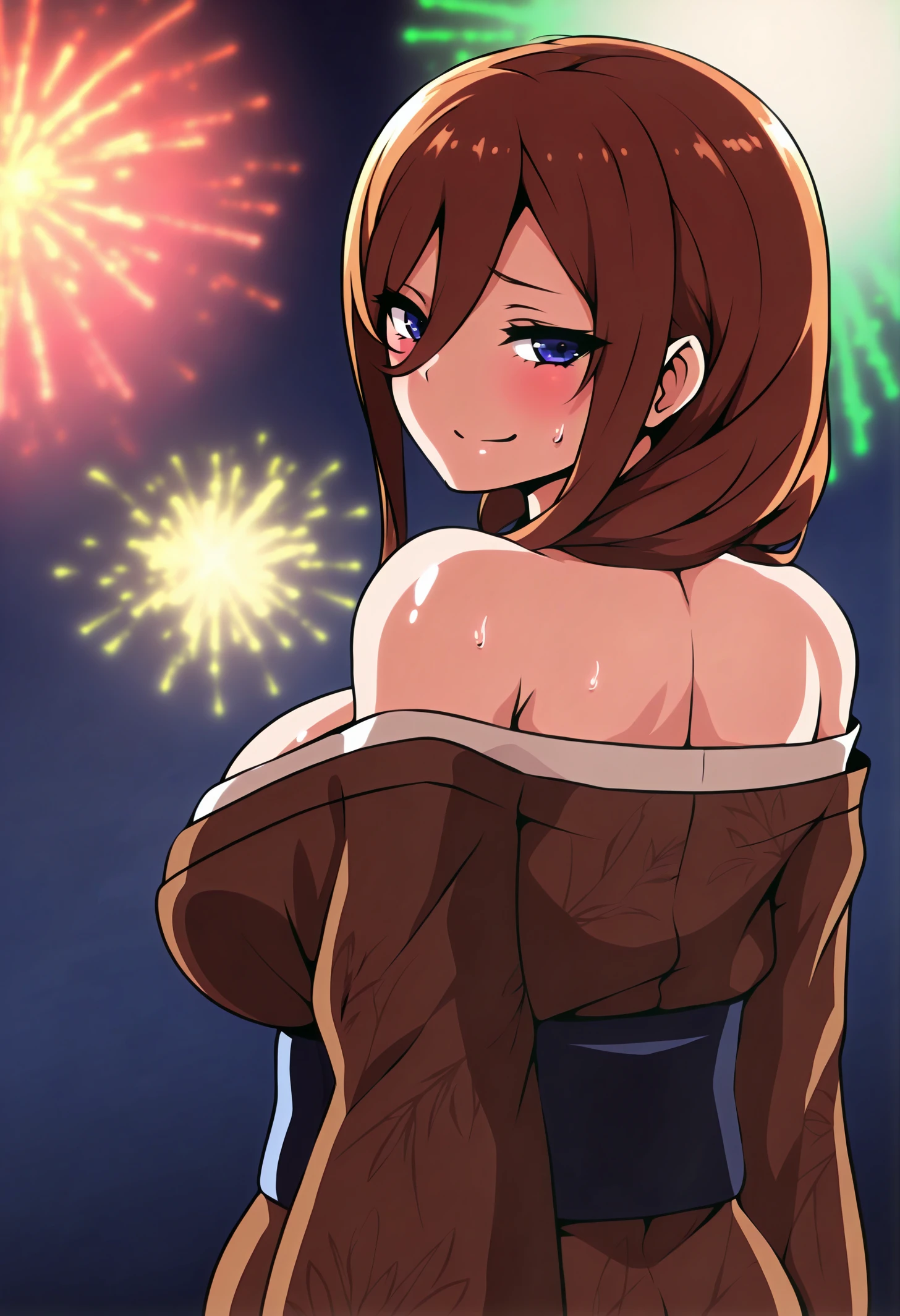 nknmkrnd, blue eyes, long hair, brown hair, hair between eyes, large breastsHow to use LoHA's in auto1111: