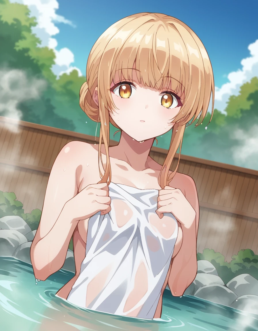 mahiru shiina, bangs, blonde hair, brown hair, yellow eyes,