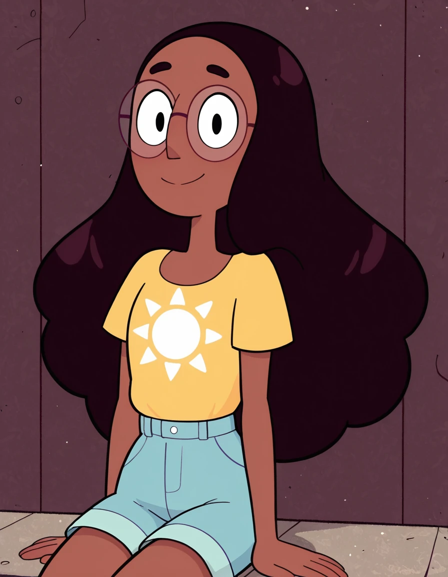 conniesu, long hair, black hair, dark-skinned female, glasses, round eyewear