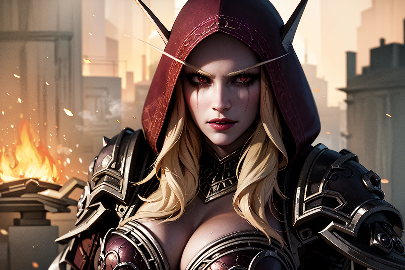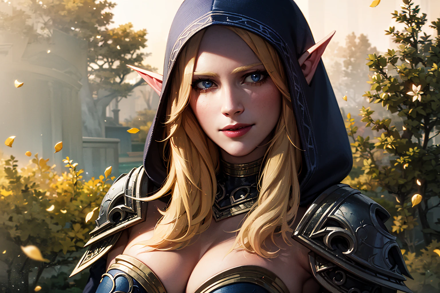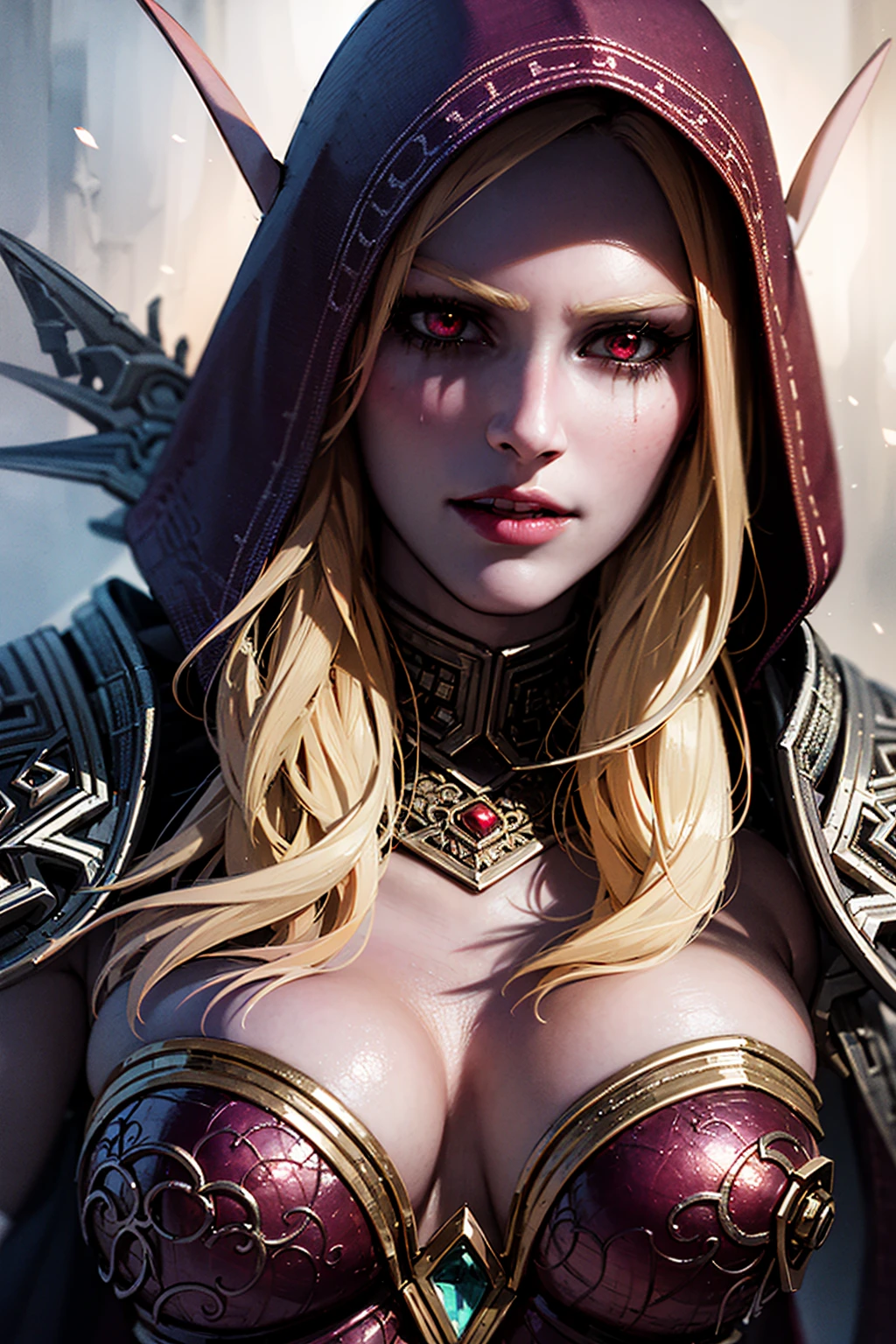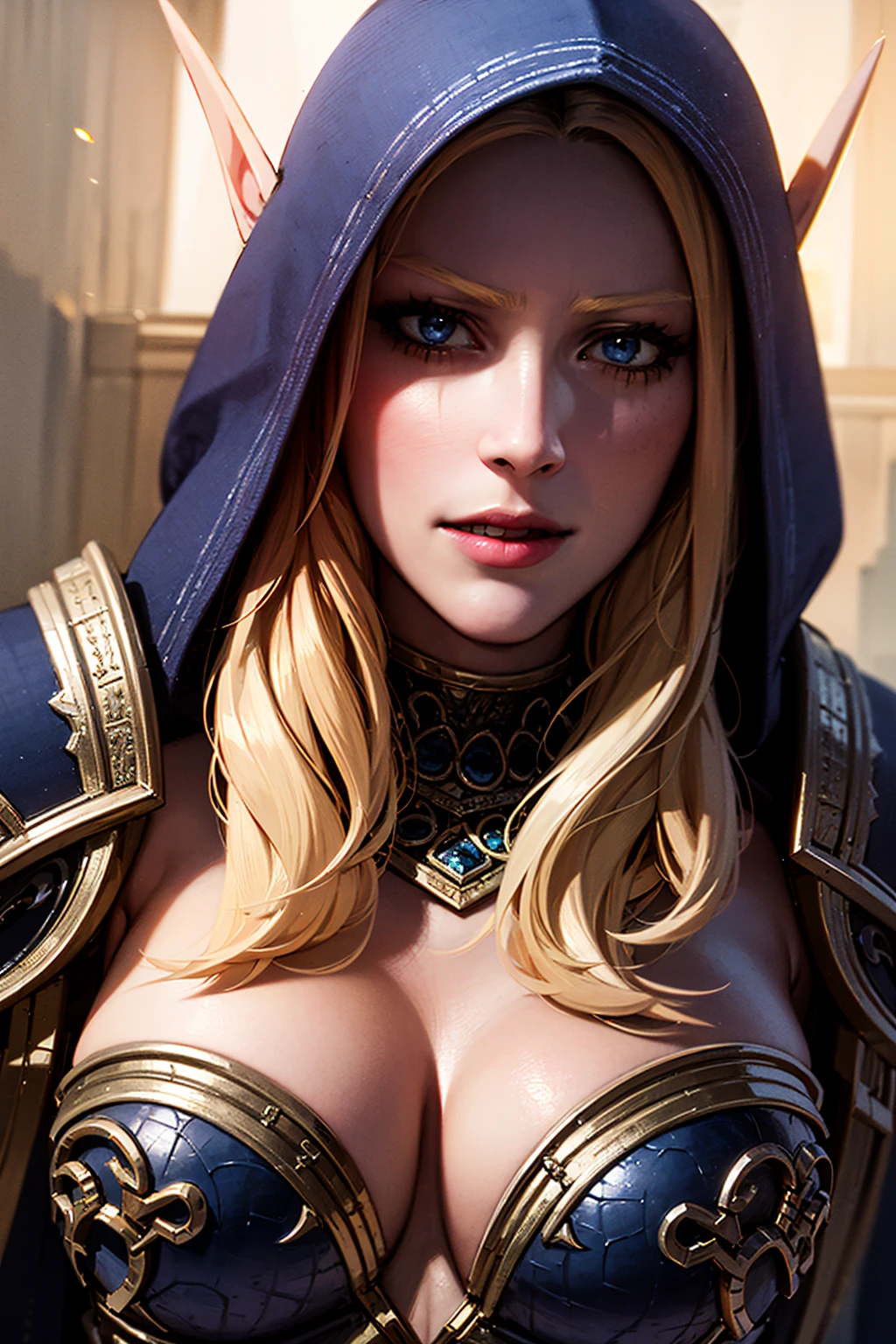 Also you may add blue eyes, hood on, blue armor, cleavage, midriff in positive prompt and makeup negative prompt for Ranger General (pre-Arthas) look.