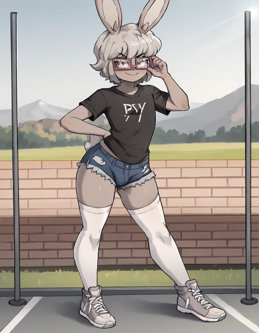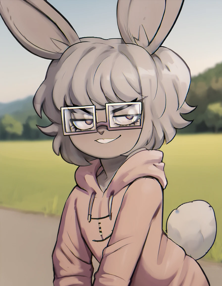 Grayson,1boy,solo,short hair,simple background,rabbit ears,glasses,grey hair,rabbit tail