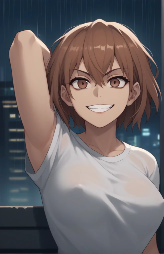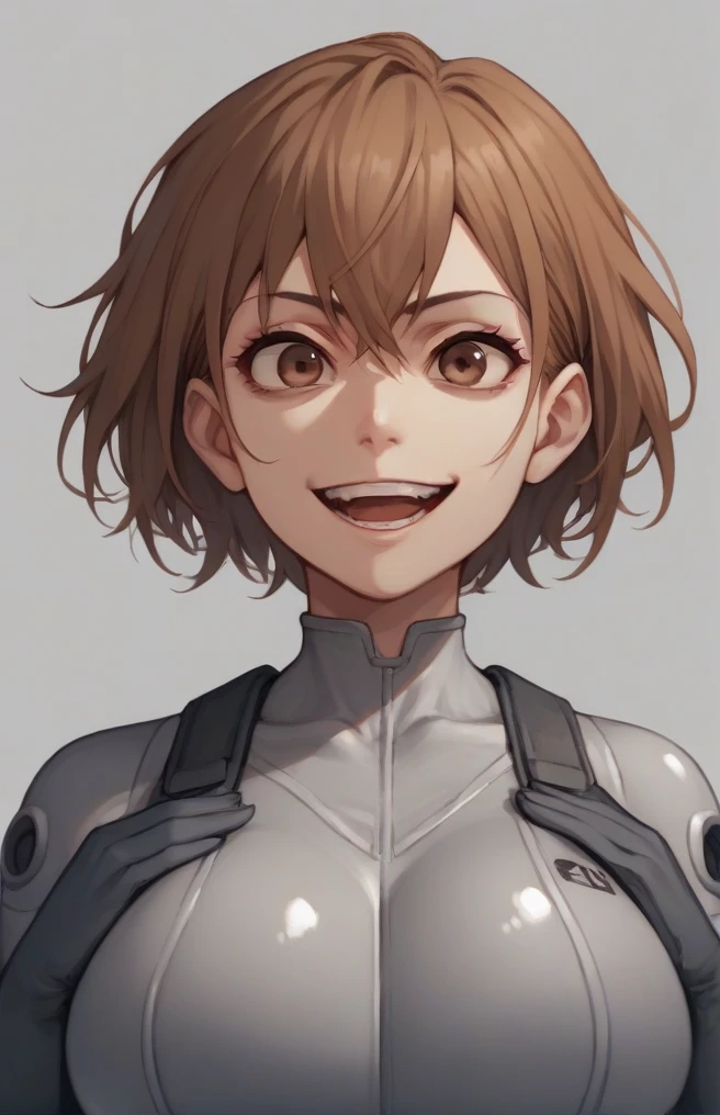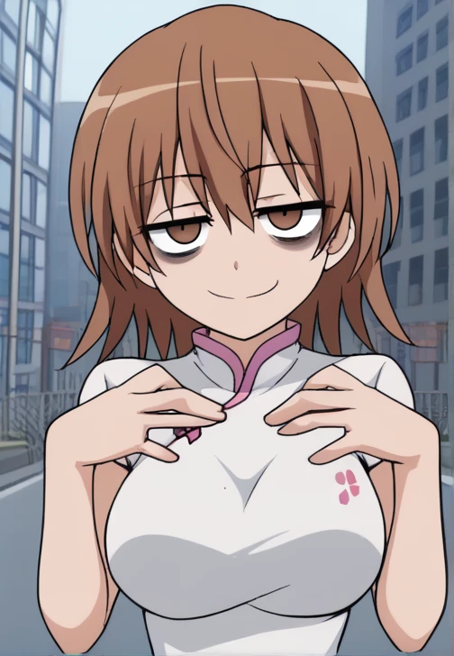 misaka worst, (bags under eyes:0.6), short hair, brown hair, brown eyes