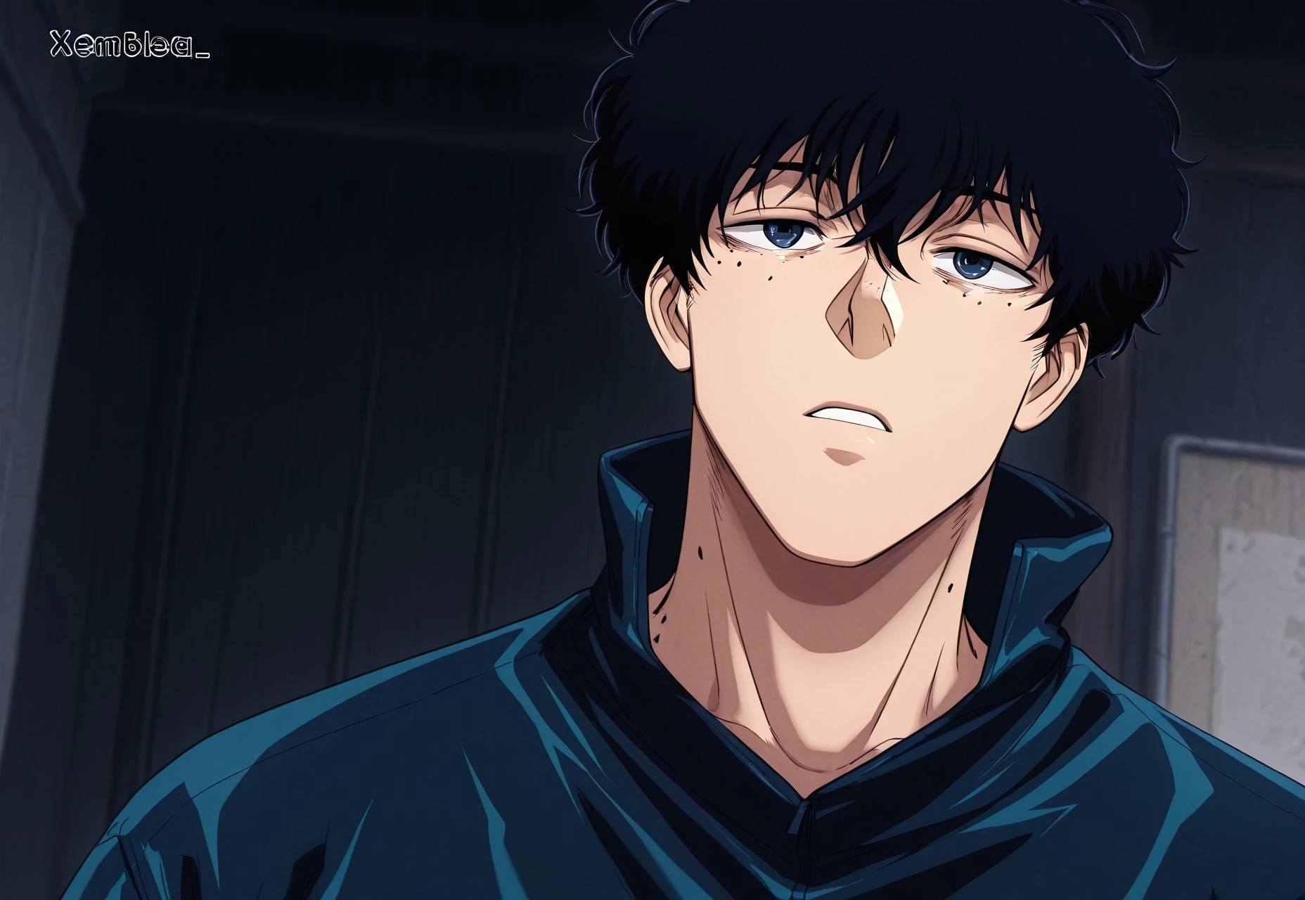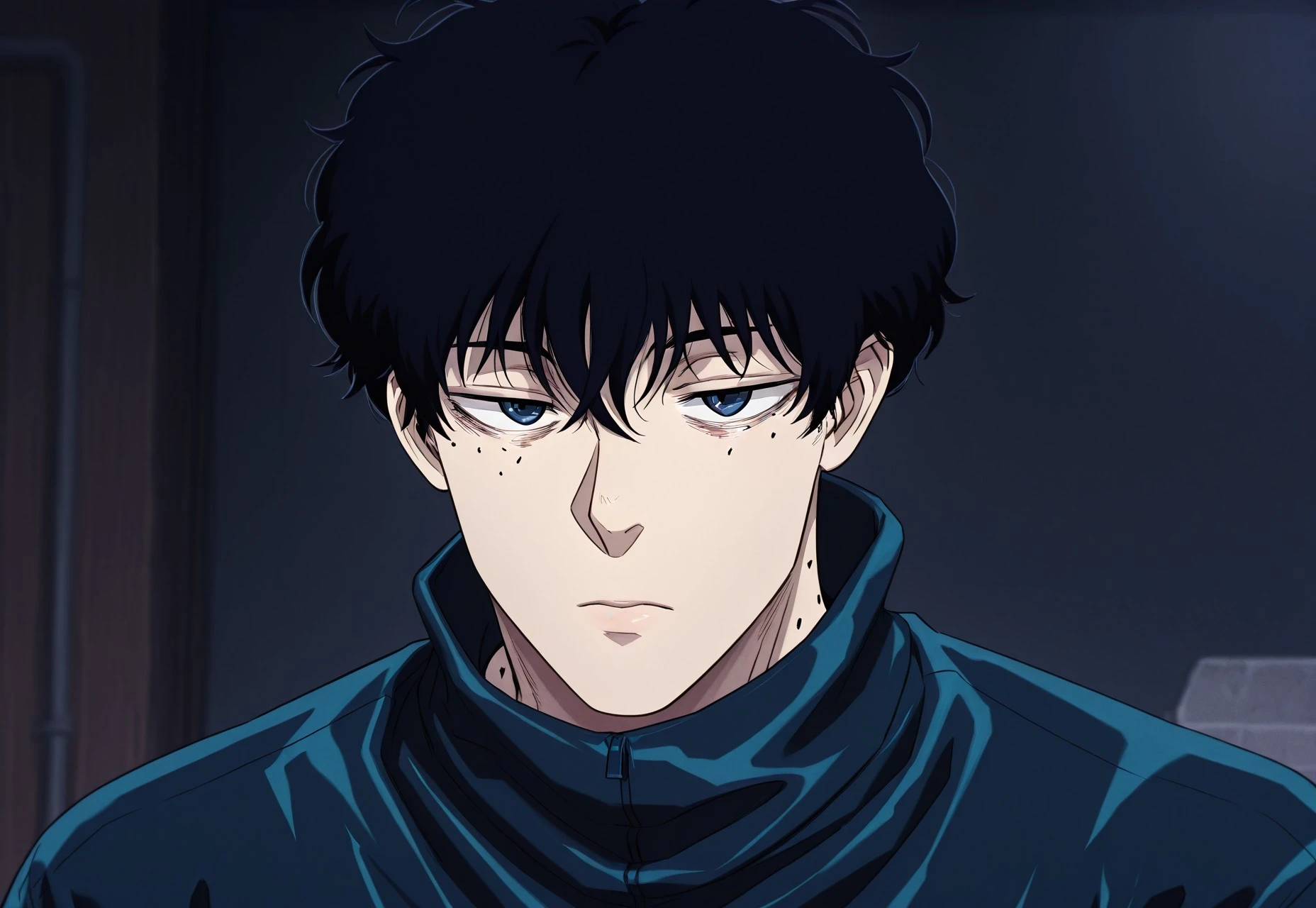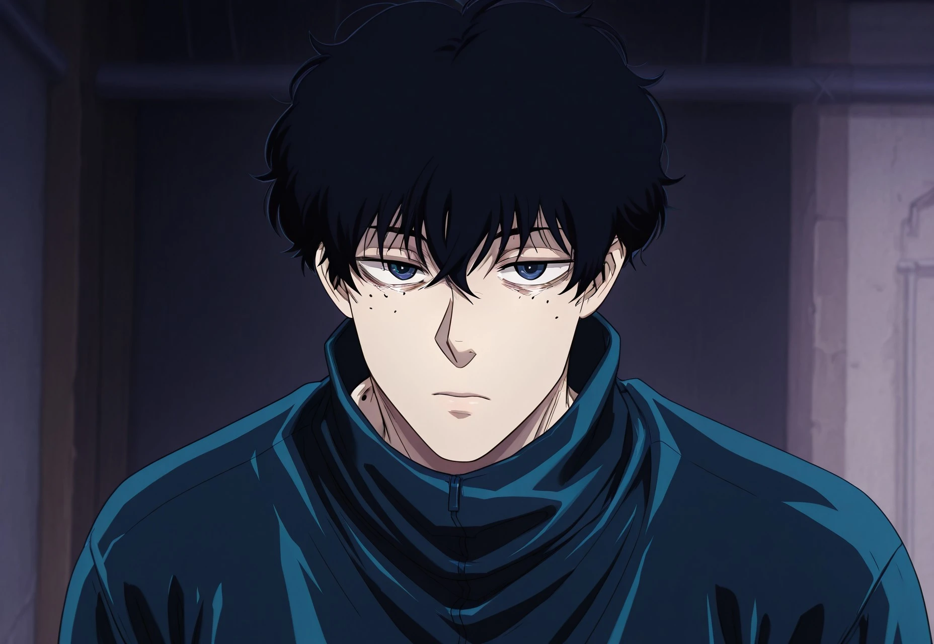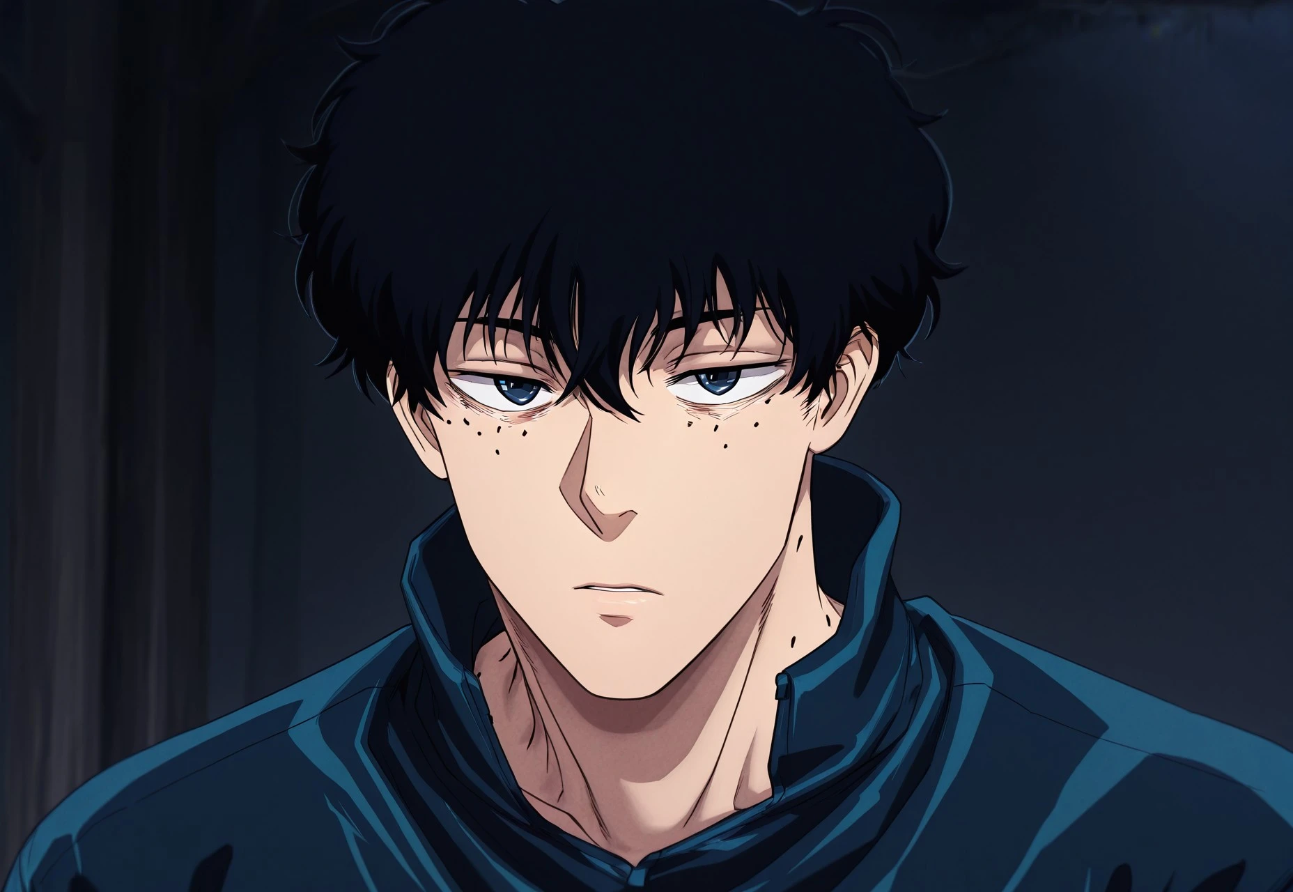 NSeba, Black Hair, Dark Blue Eyes, Moles, 3 Moles, Short Hair