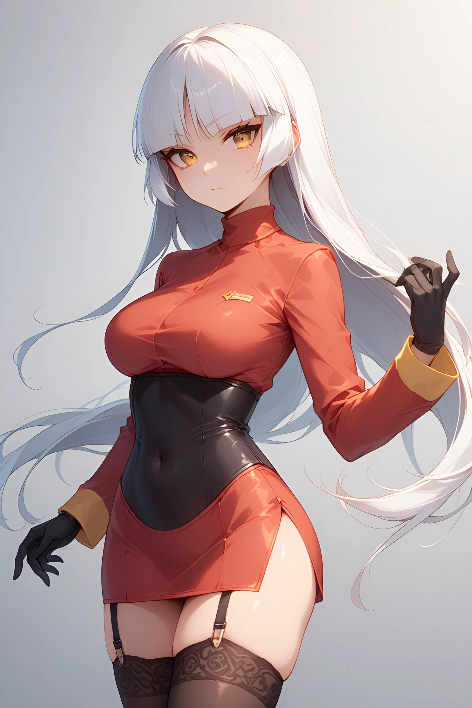 pantyhose, gloves, boots, bodysuit, white gloves, skirt, black bodysuit