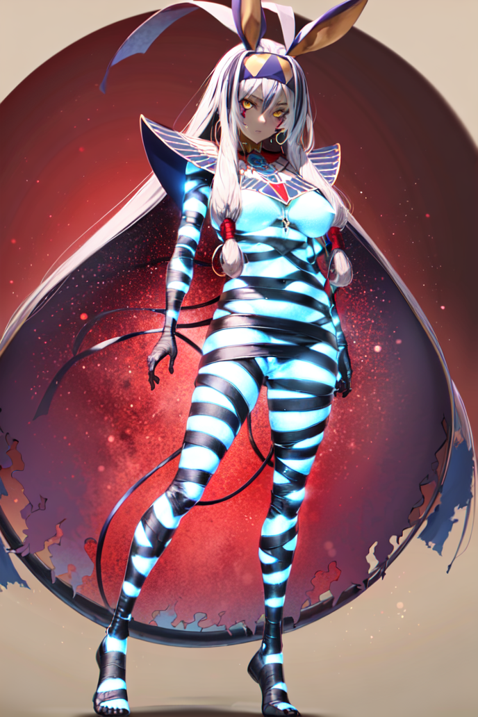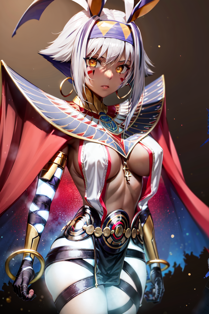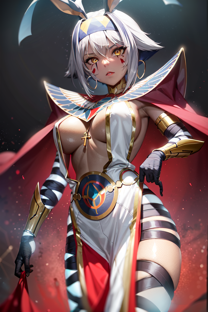 Even in her regular Saint Graph, Heroic Spirit Nitocris holds the facet of the "Fearsome Arbitrator of Divine Punishment" within herself, and when this manifests exceptionally strongly in her, she takes the form of this Alter Saint Graph Namely, the one akin to the freezing winds of the desert night: Nitocris Alter."