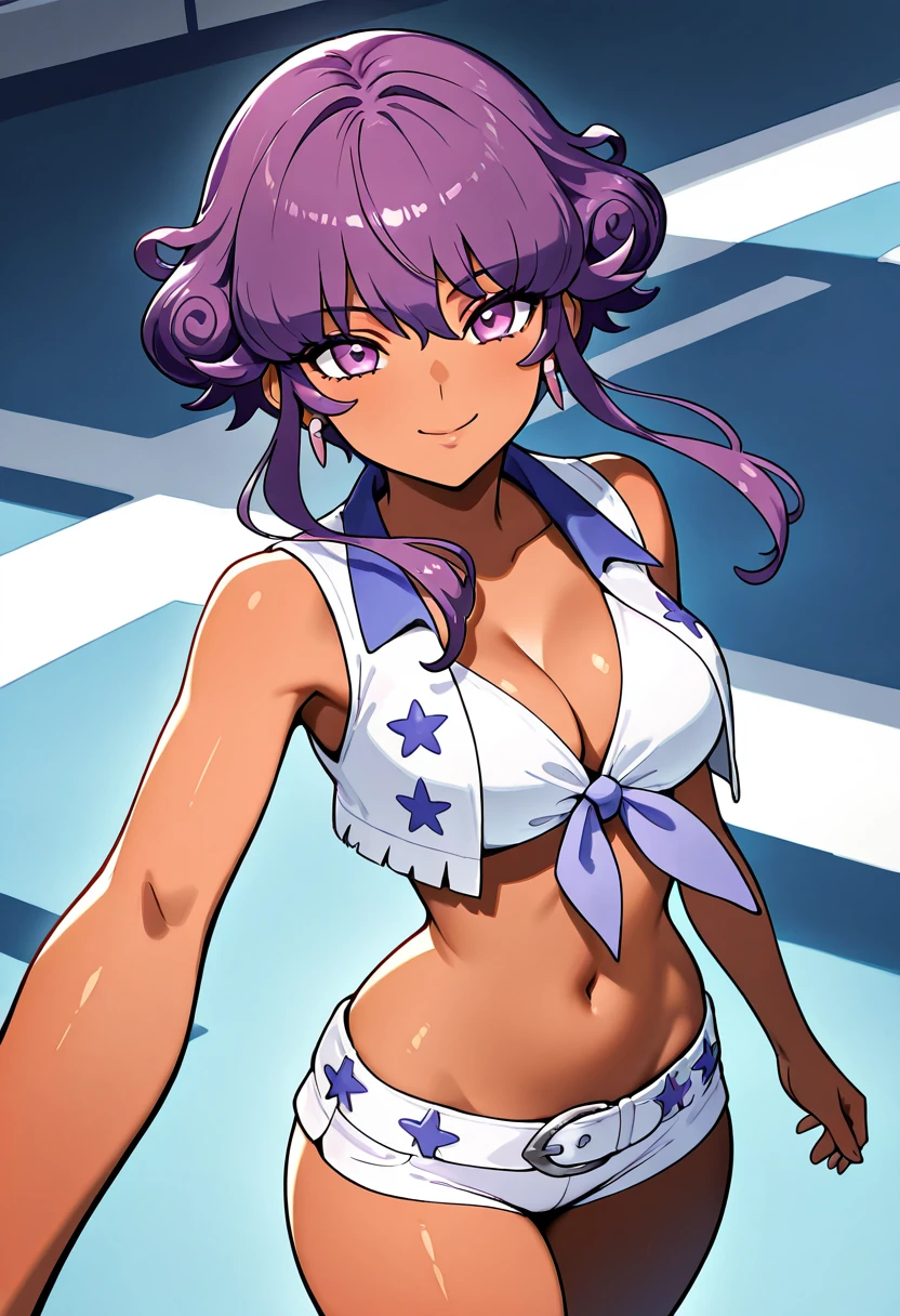 zzTulip, purple eyes, purple hair, dark skin, dark-skinned female,
