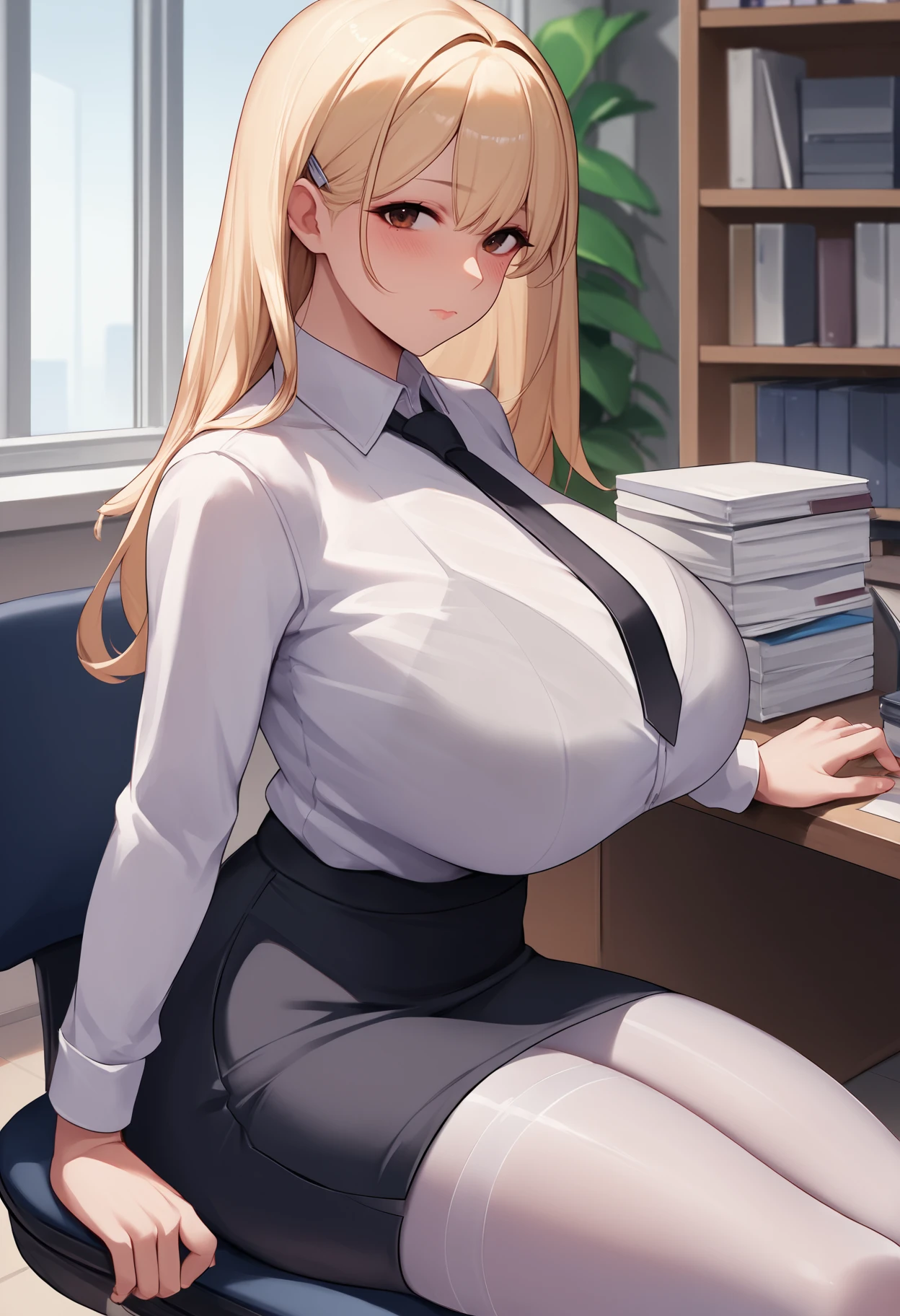 tiarnd, brown eyes, blonde hair, long hair, huge breasts