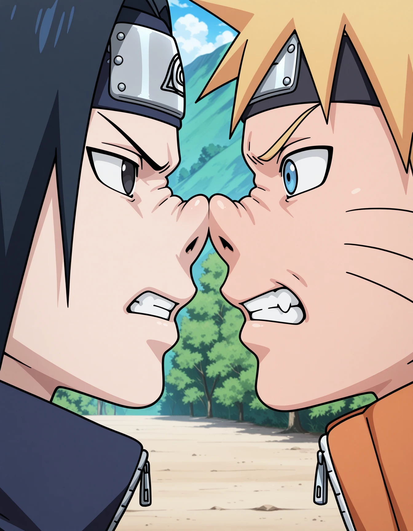 顔を密着させて鼻を押し付けあうようなコンセプトです。プロンプトは以下を参照してください。