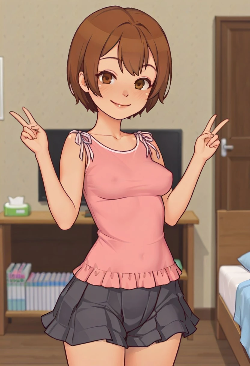 AnnaDL, brown hair, brown eyes, short hair, medium breast