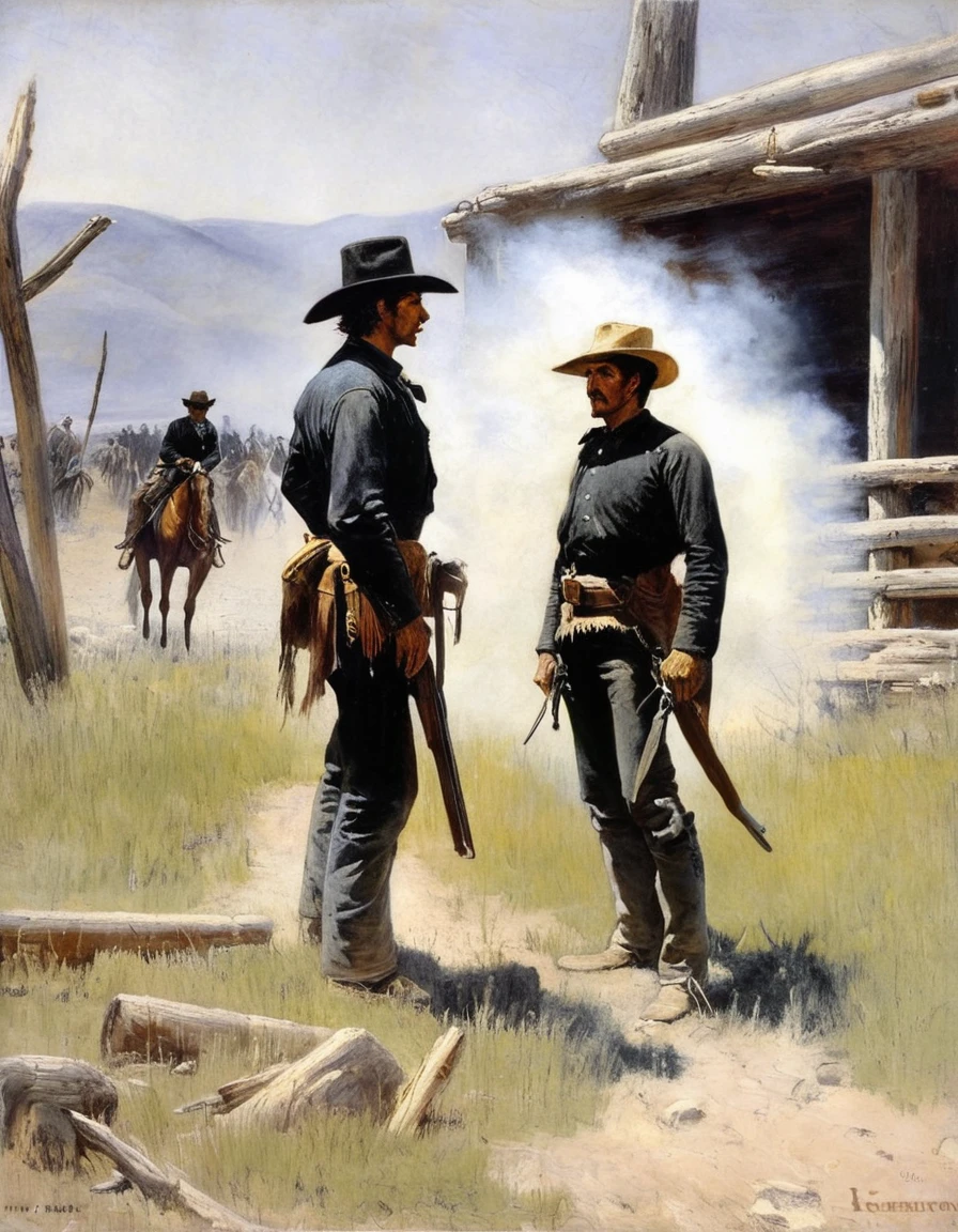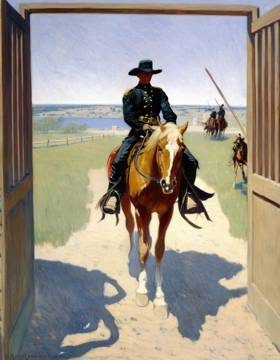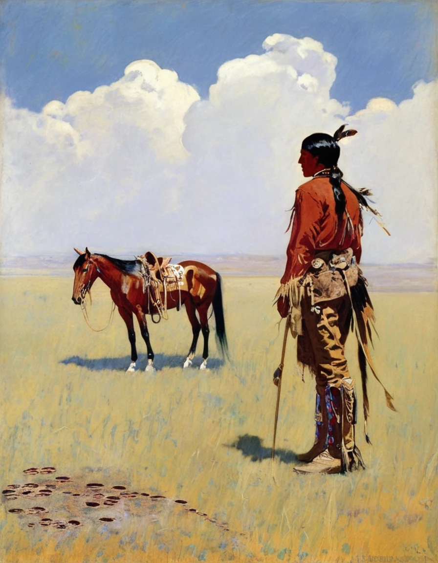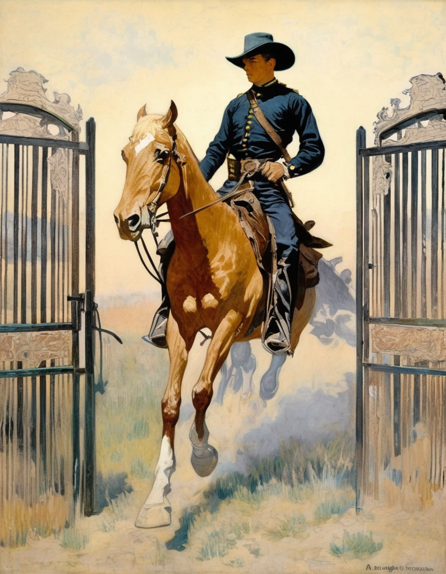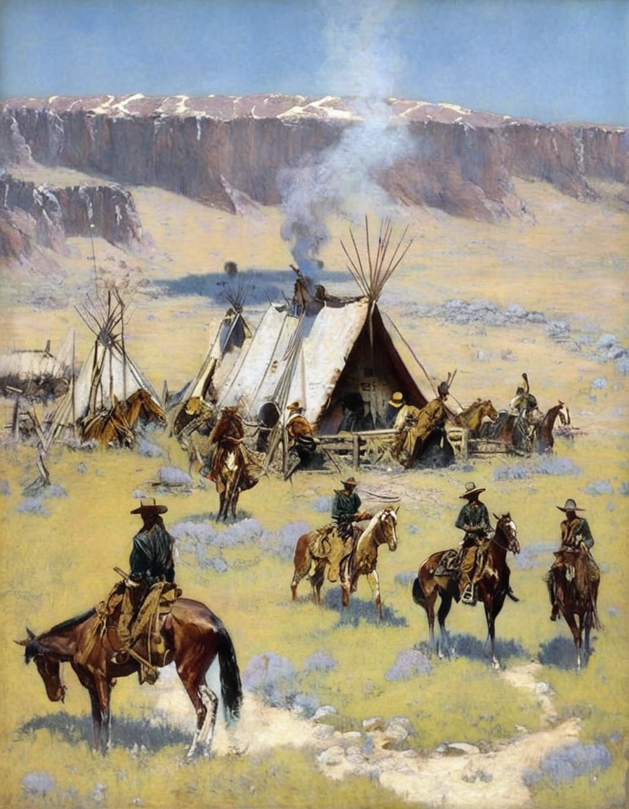I love the style and themes of Frederic Remington. "Frederic Remington (1861-1909) was an American painter, illustrator, and sculptor, best known for his iconic depictions of the American West"