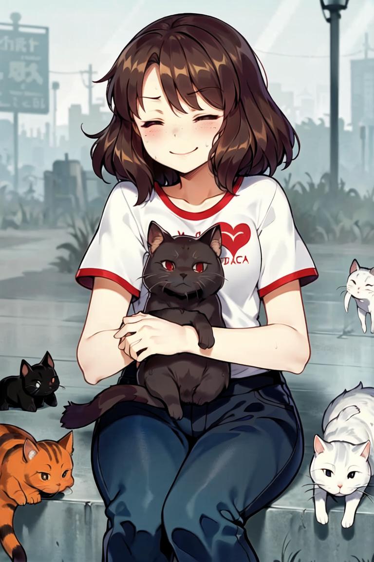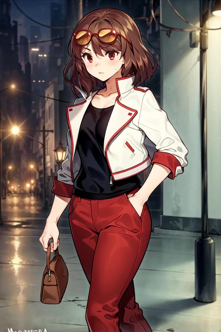 Unfortunately her outfit is a bit inconsistent without specific prompting.