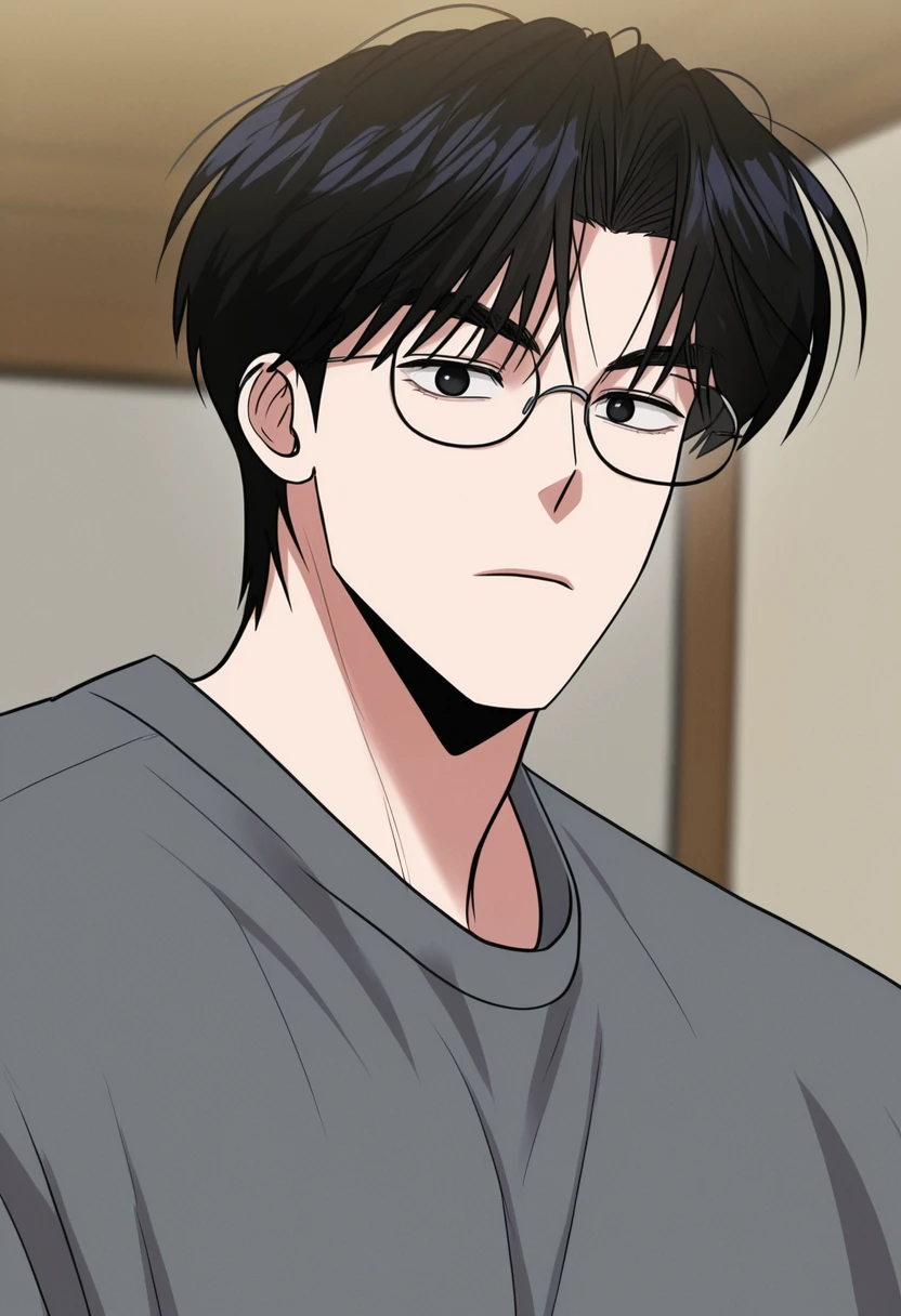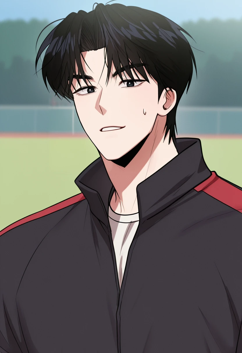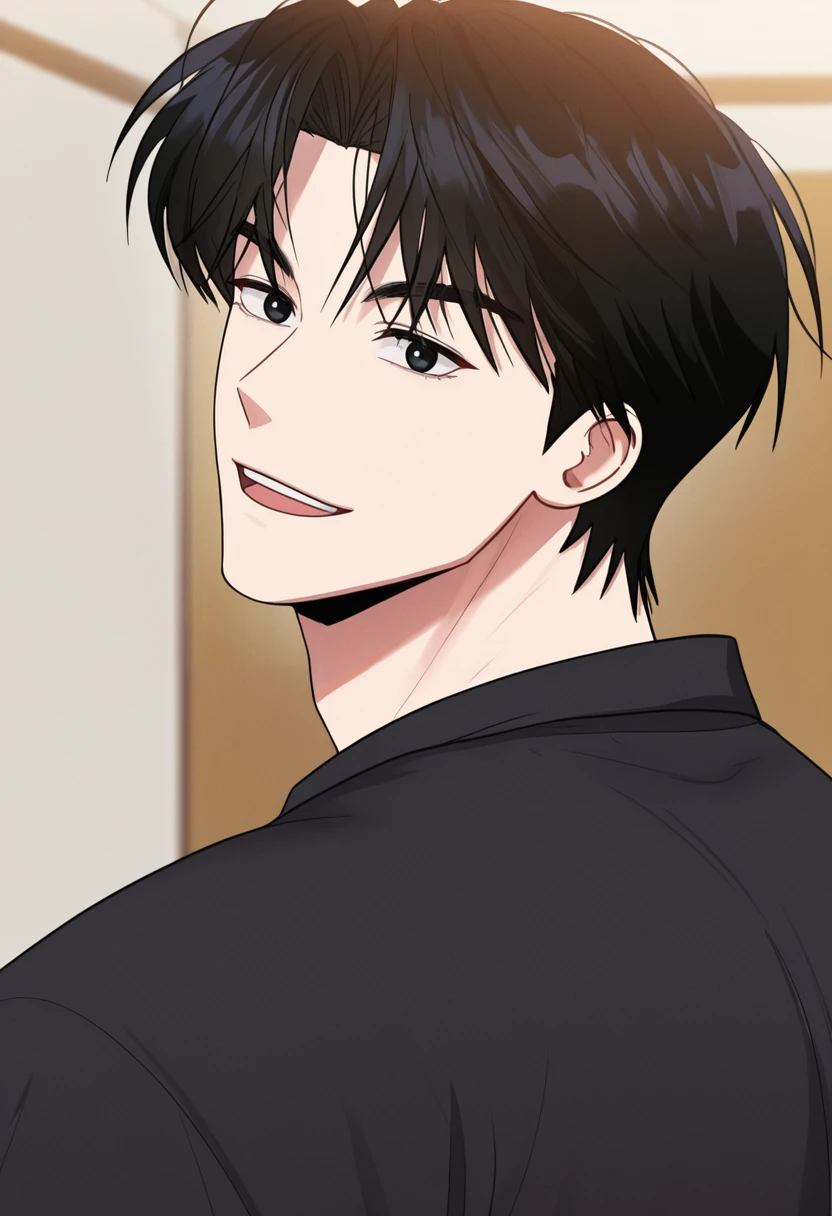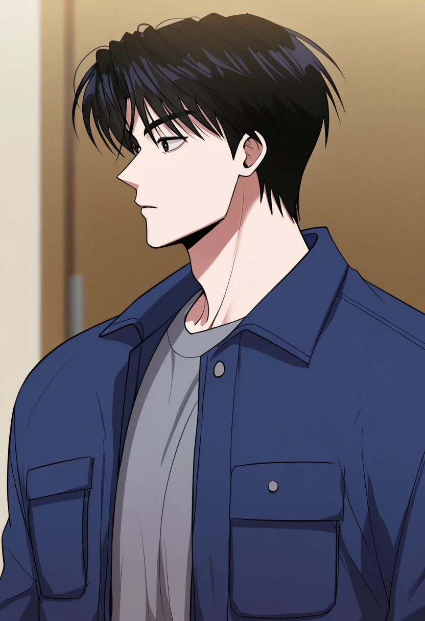 jinwoo, black hair, black eyes, short hair, parted bangs
