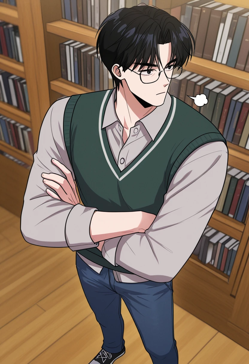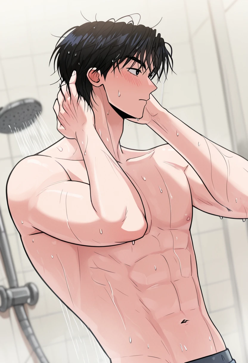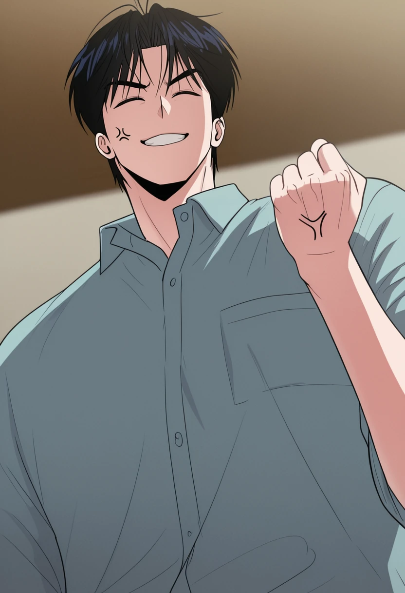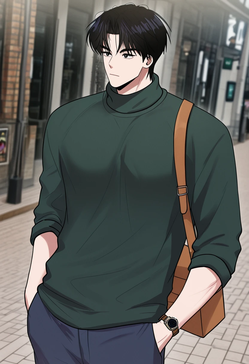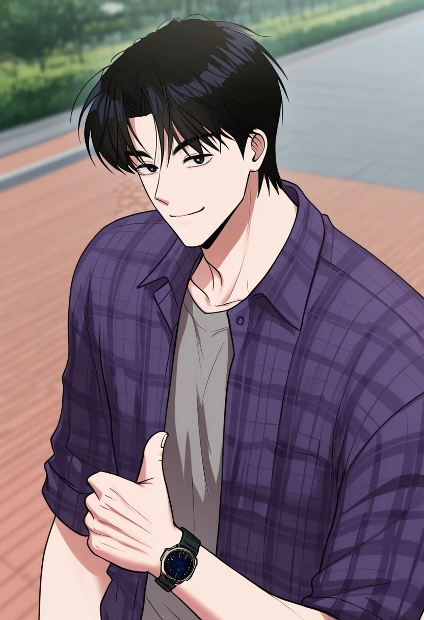 jinwoo, black hair, black eyes, short hair, parted bangs