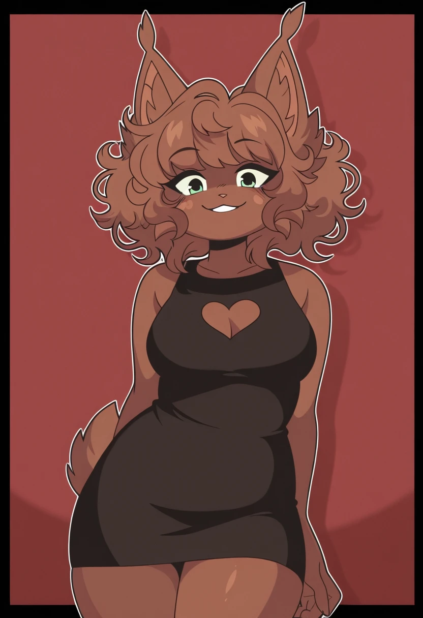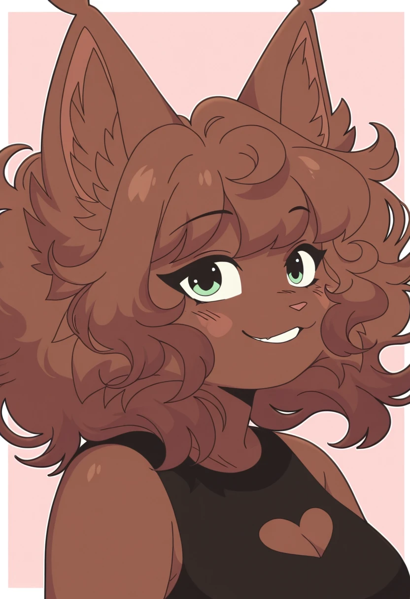 furry female, green eyes, brown hair, messy hair, animal ears