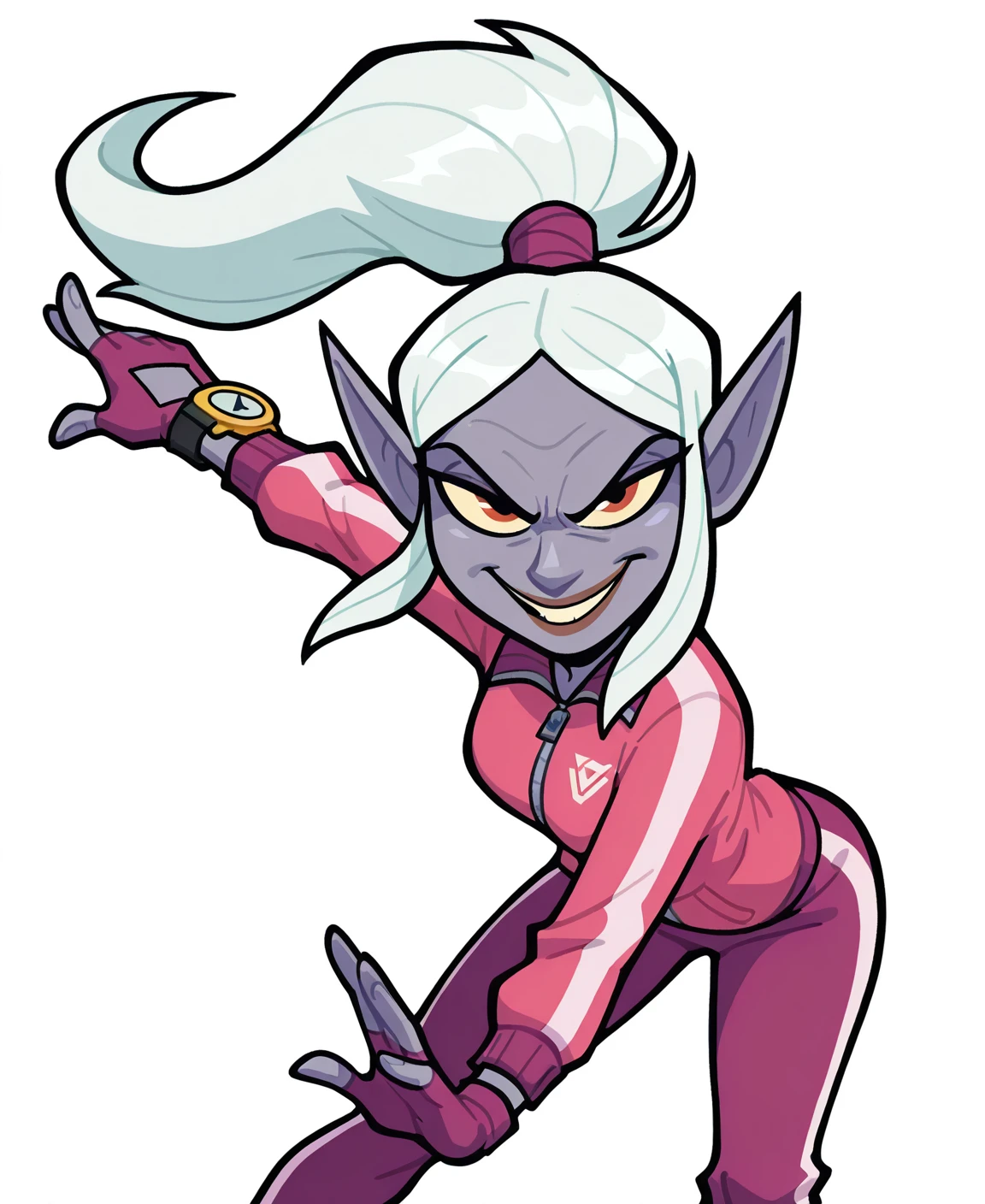 ((toon, funny, stylized)), solo, dynamic pose, sharp, clean lines, absurdres, black outline, vibrant colors, (saturated:0.5), white background, simple background,