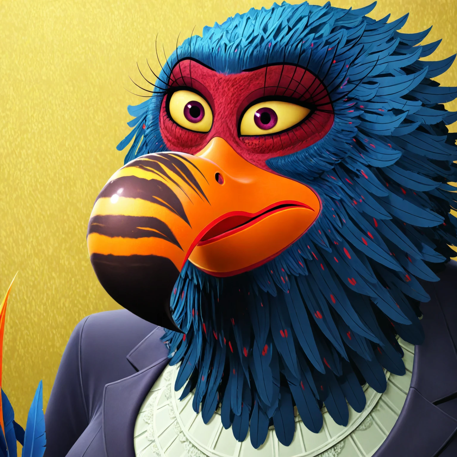 lady mayhem (female, toucan, blue feathers)
