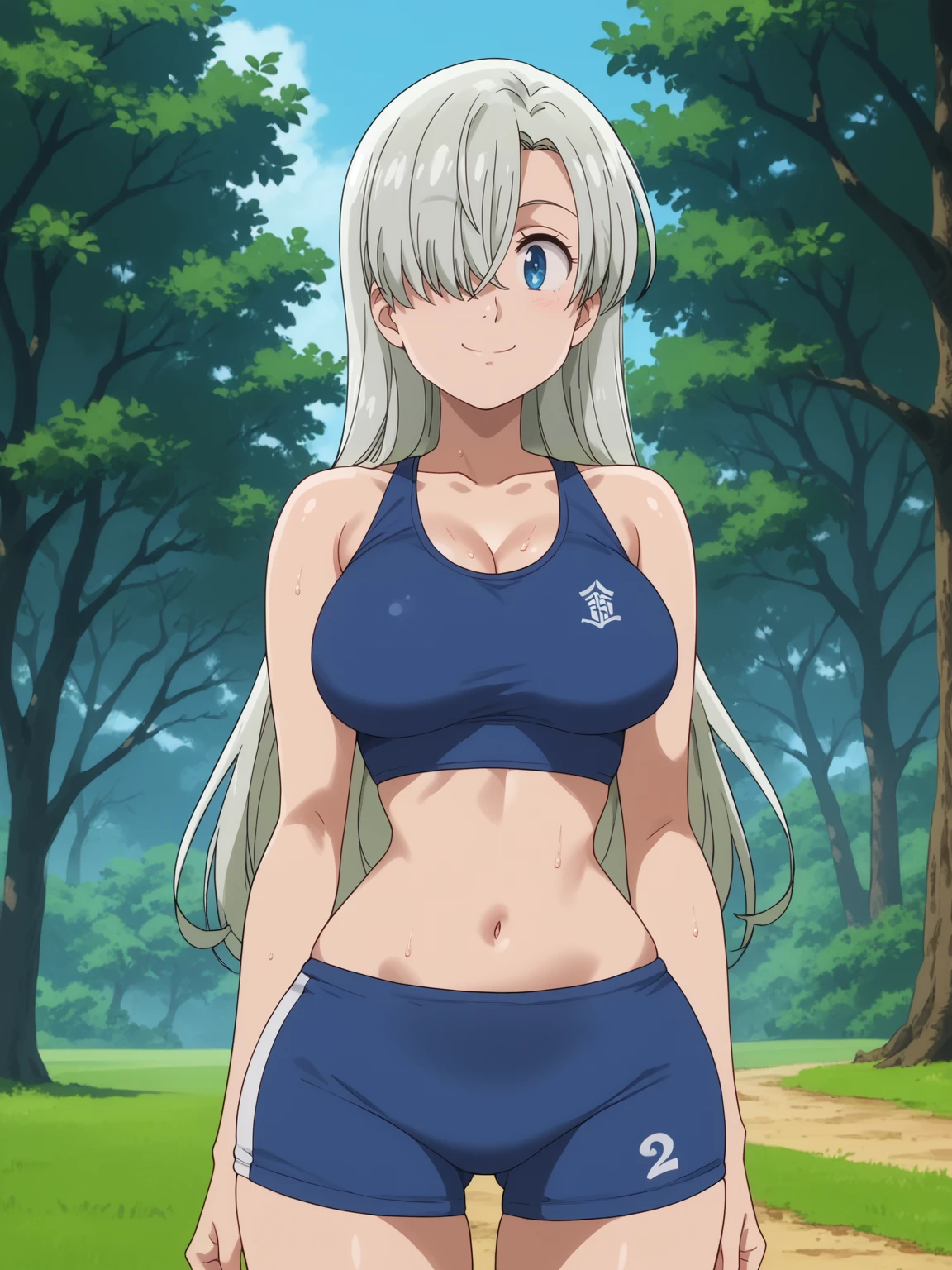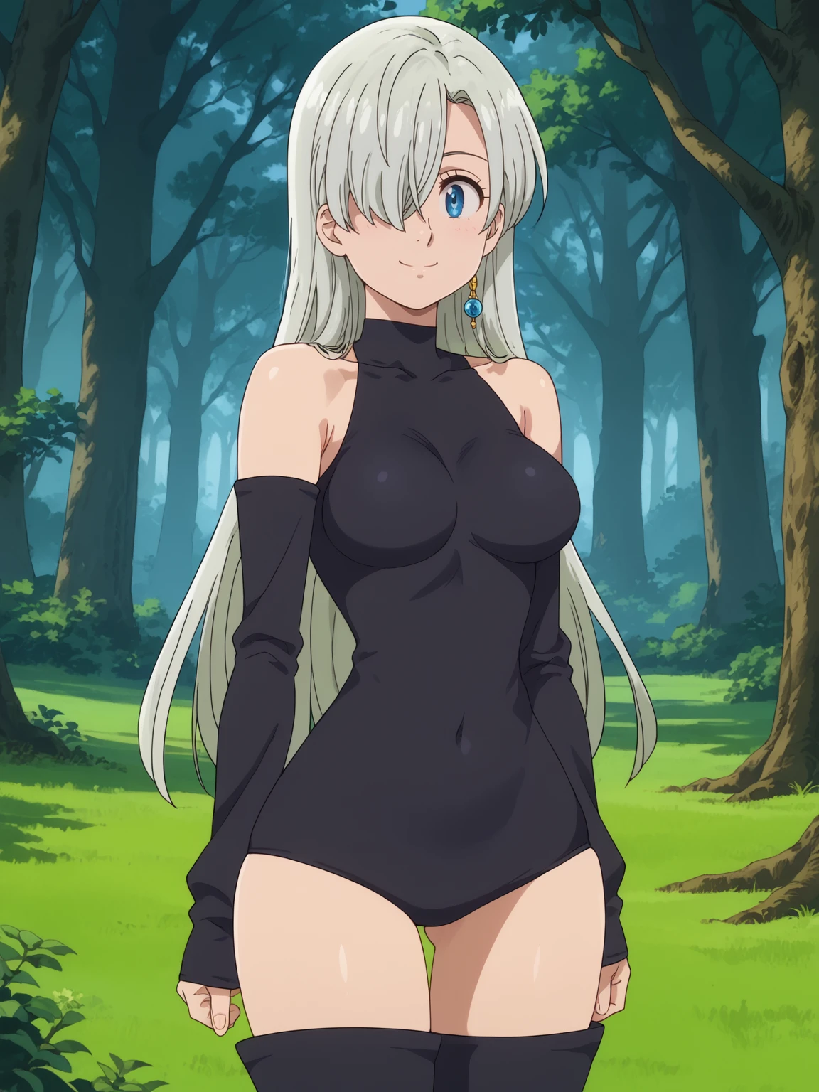 elizabeth liones, hair over one eye, silver hair, long hair, blue eyes