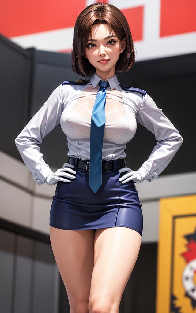 Short sleeve uniform - tsujimoto natsumi, police uniform, blue shirt, short sleeves, white gloves, pencil skirt