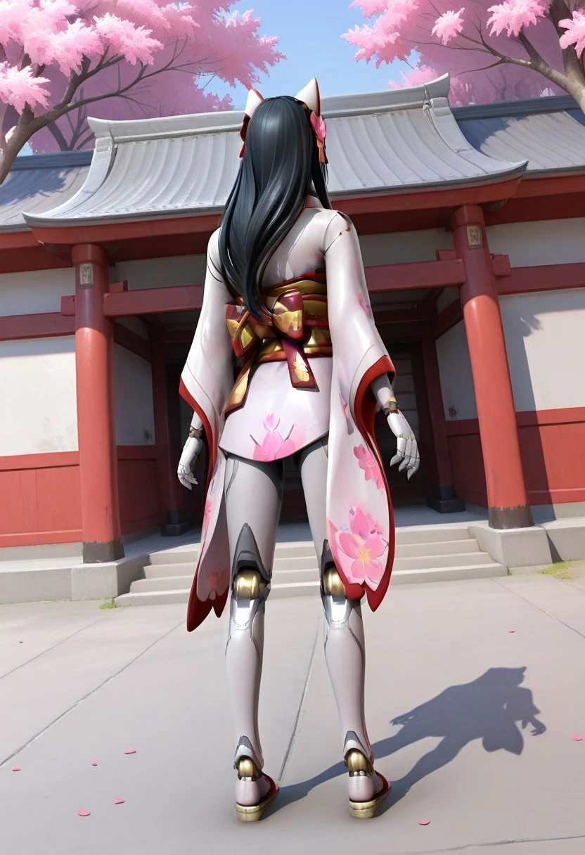 Important Prompt (character clothing): Short white kimono (pink details), long sleeves, sash (large bow on the back), pink strings (with or without kimono).