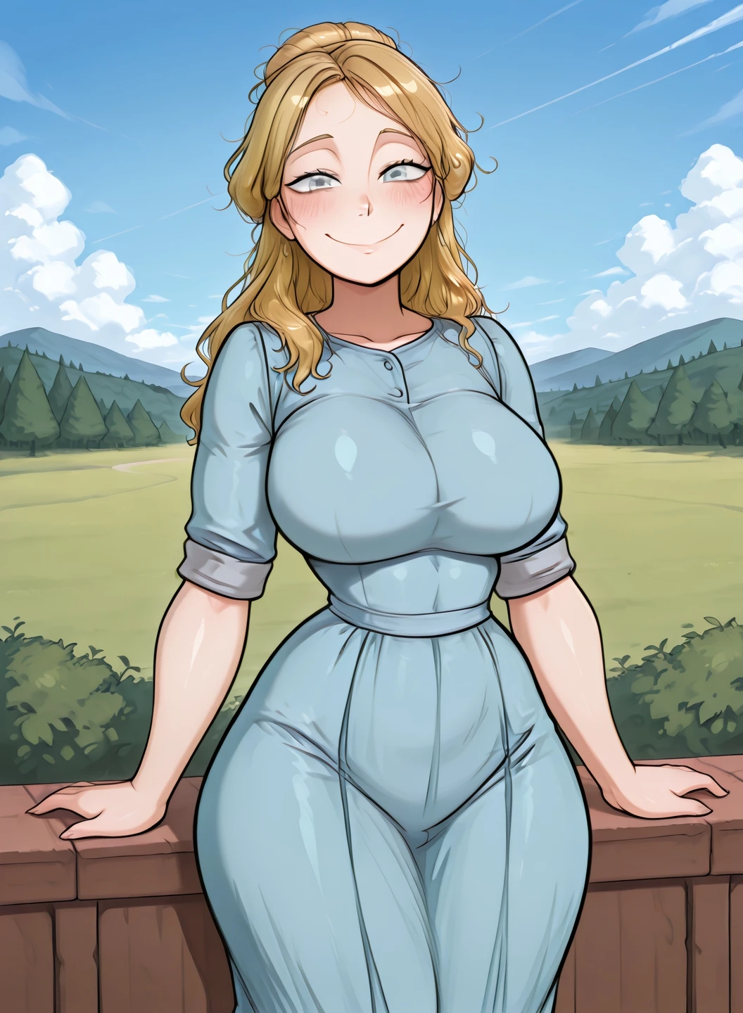 This model attempts to stay faithful to her appearance in the books in which she is described as having long dirty blond hair with large silver/grey eyes.