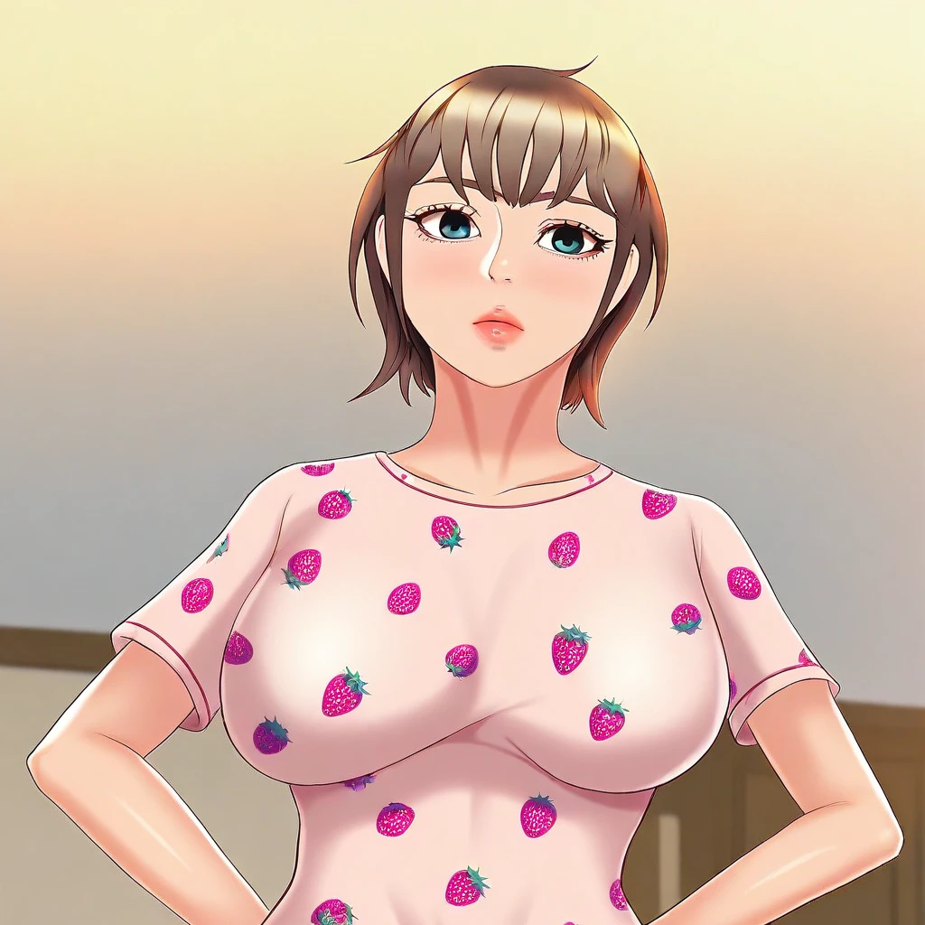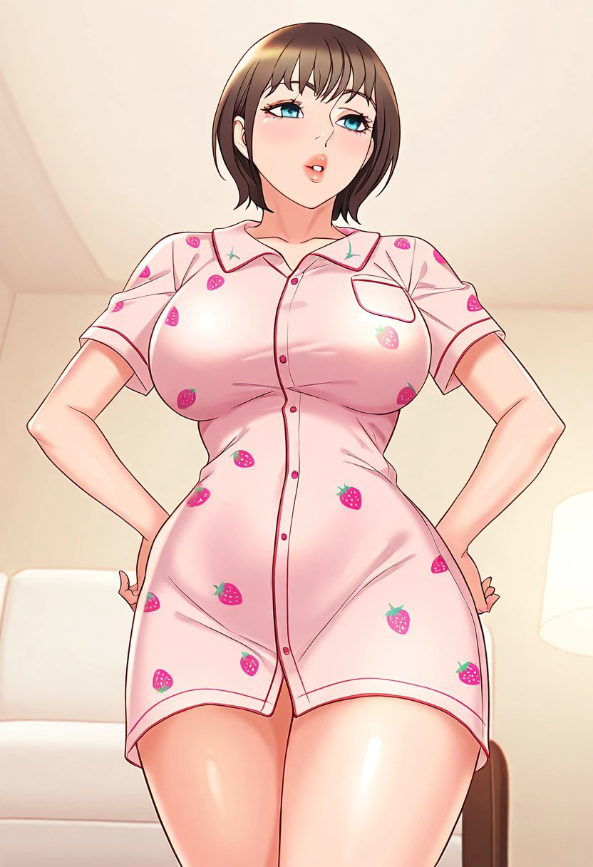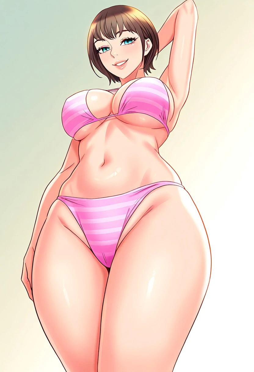 (( <lora:lua:1> , lua, thin waist, wide hips, beautiful skin, beautiful turquoise eyes, clear eyes, bright pupils, beautiful eyes, beautiful brown hair, beautiful short bob haircut, bangs, big and shaggy breasts, natural beauty, extraordinary beautiful woman, attractive woman, super sexy woman, lustful body, sexy woman with seductive obscene body, sensual body, voluptuous body, sexy beauty, no piercings, no piercing, ))