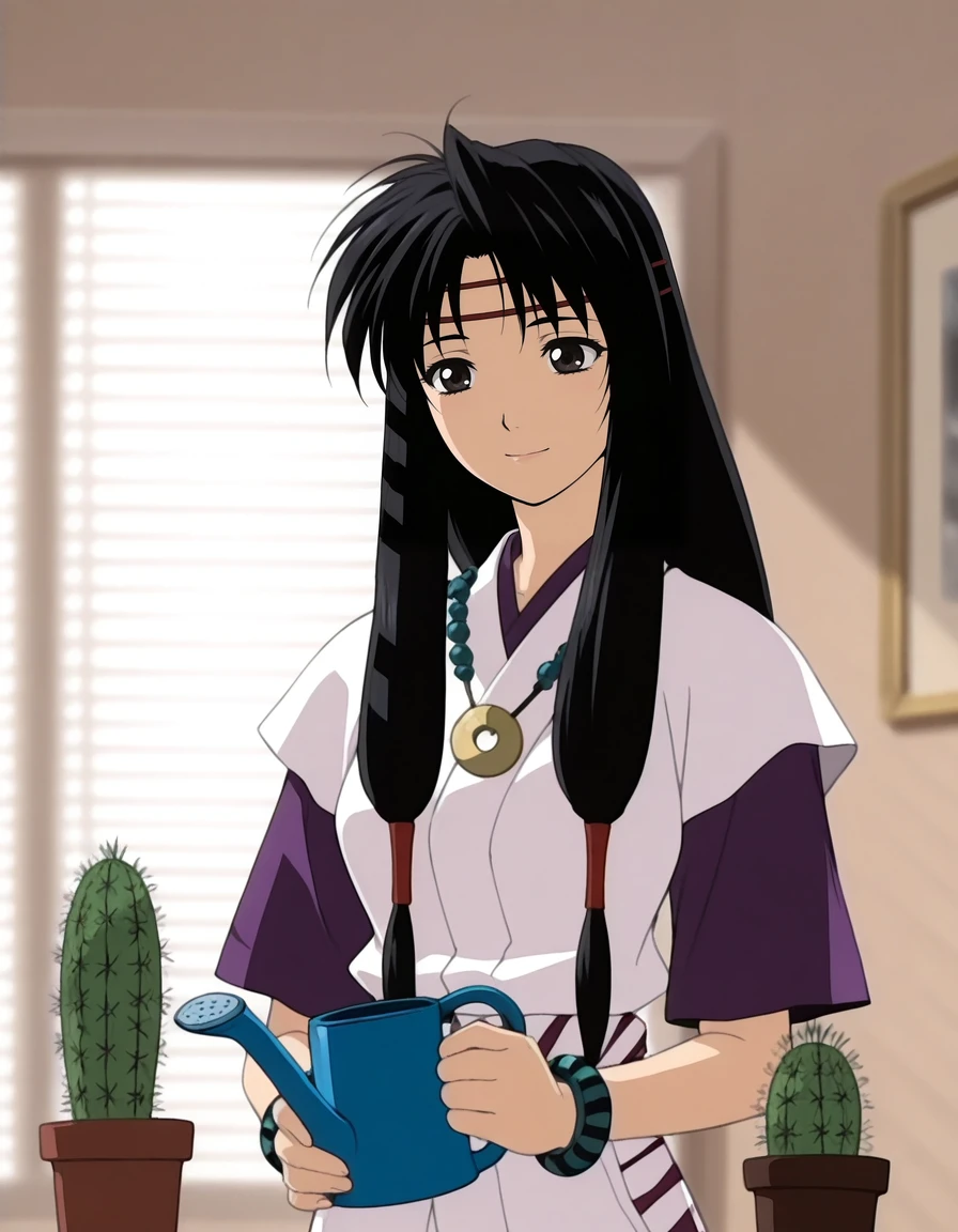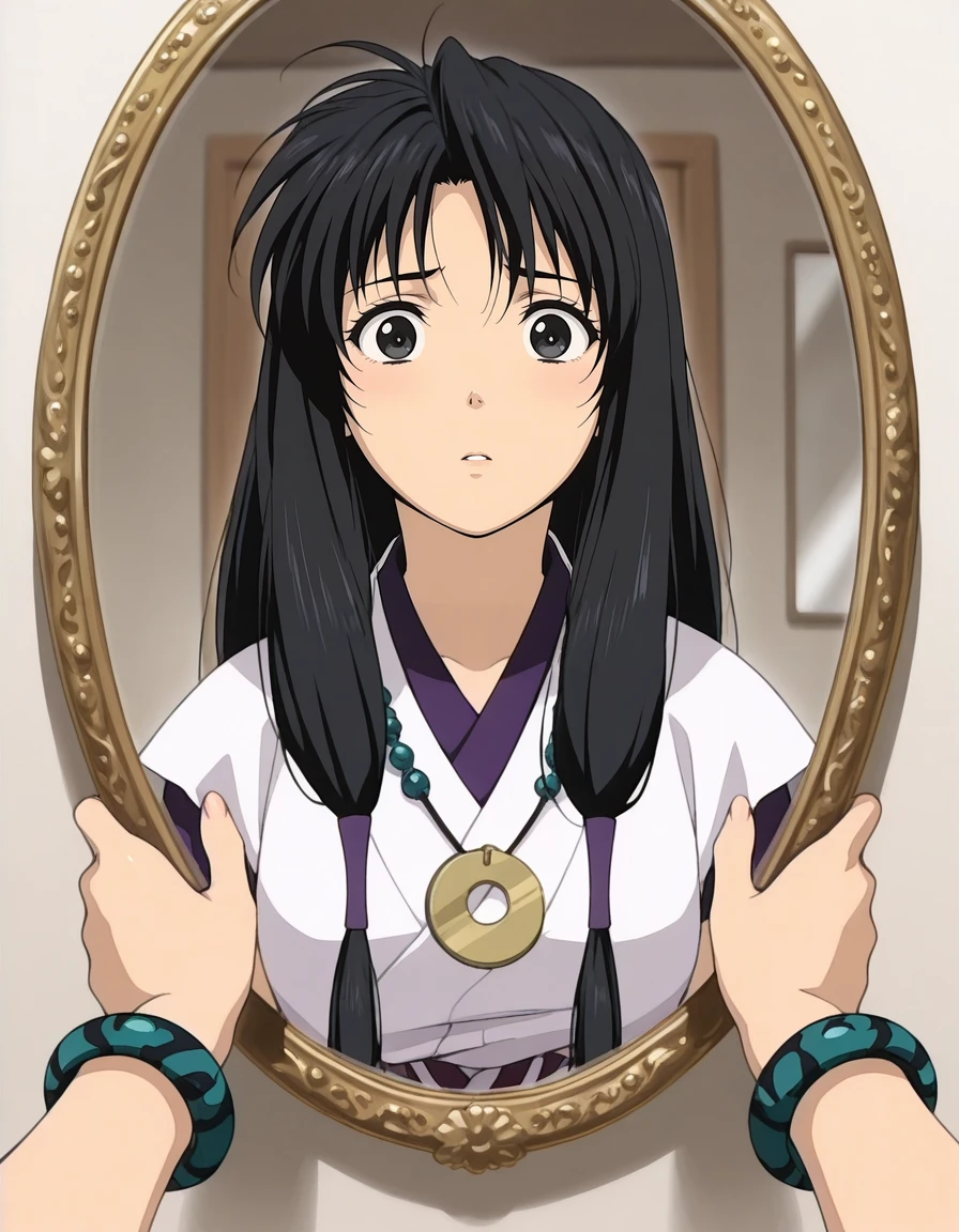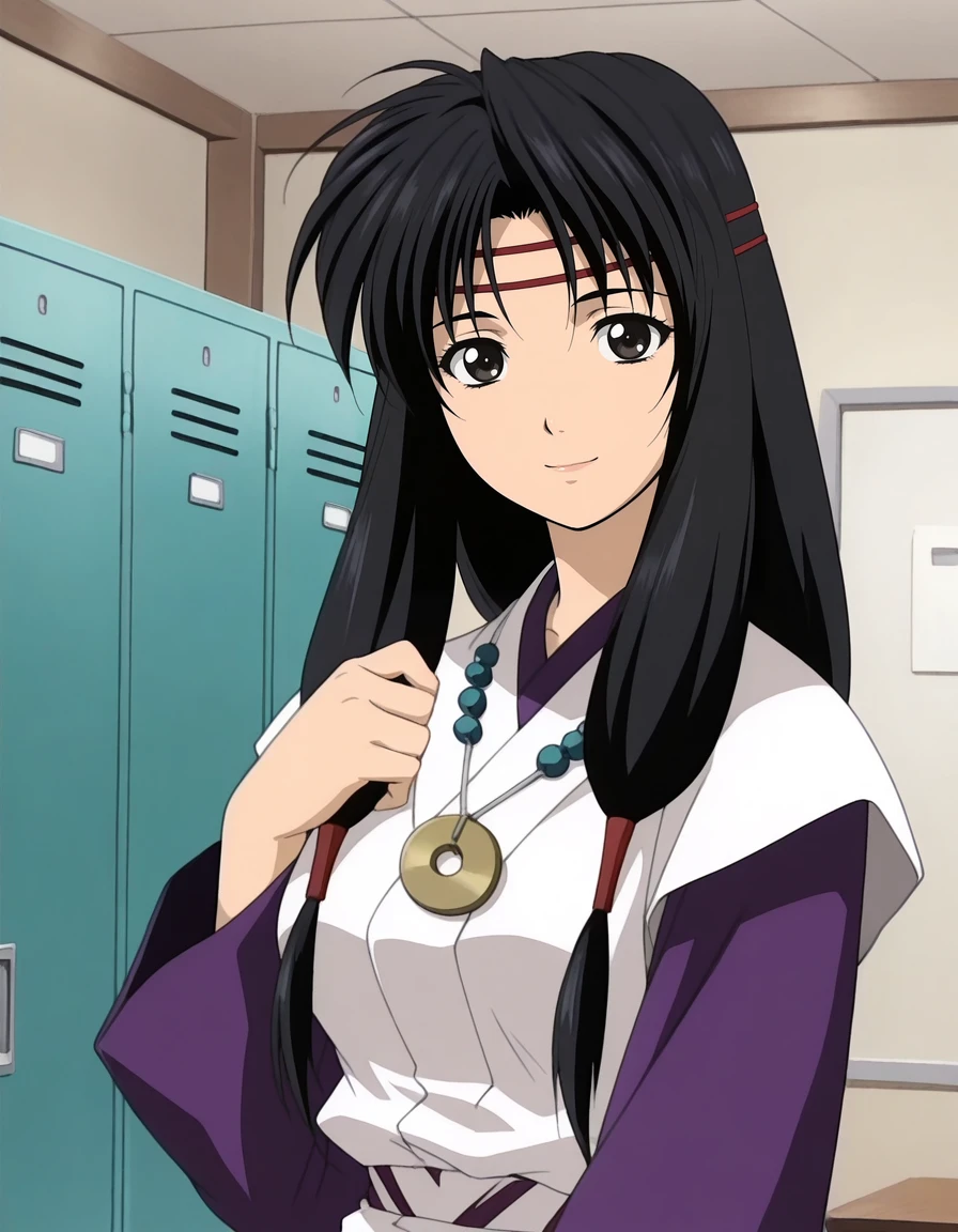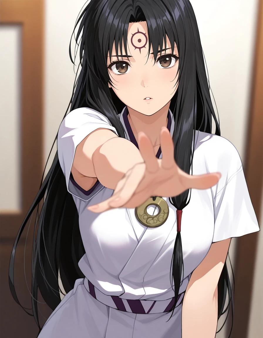 mai_kdsmiko,long_hair,black_hair,black_eyes,headband,japanese_clothes,white_clothes,necklace,bracelet,full body,dynamic pose,bare_legs,white_socks,clogsRecommend preferred Strength: 0.7~1.