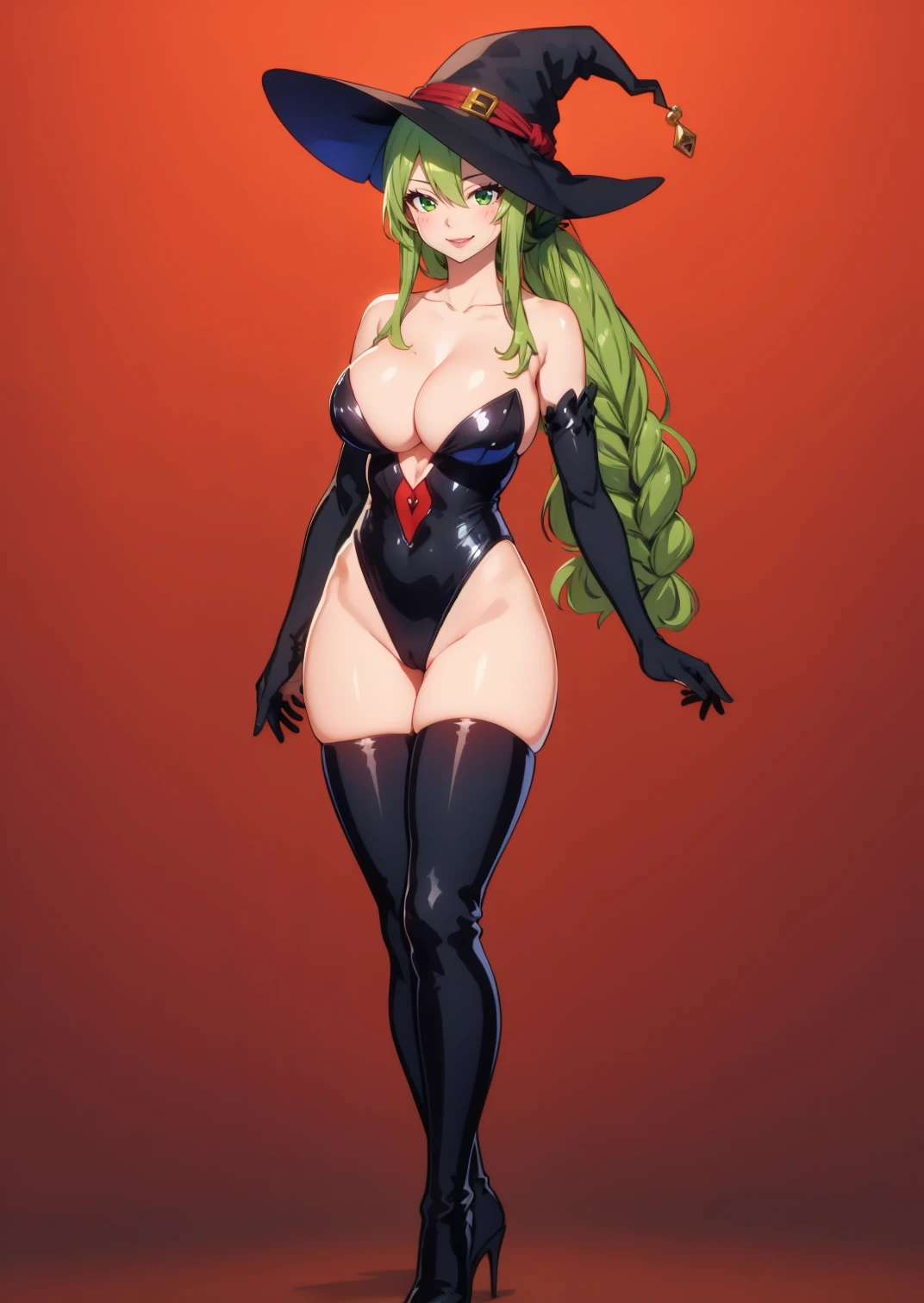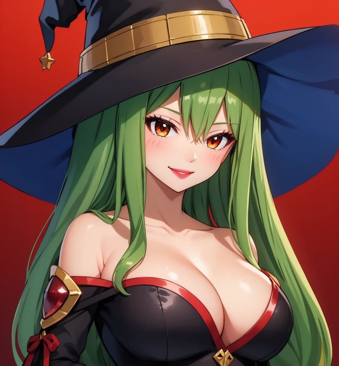 ezwitchregret,longhair,green hair, green eyes, lips,mature female