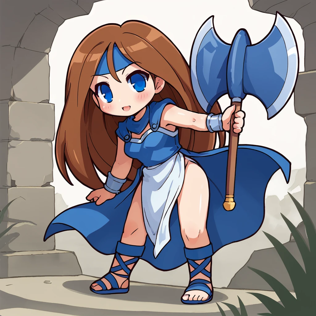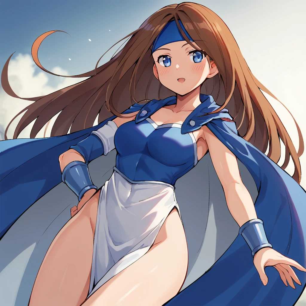 diane, brown hair, very long hair, blue eyes, blue headband,
