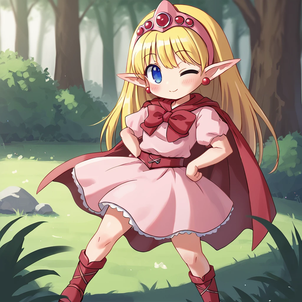 lorien, elf, blonde hair, long hair, blue eyes, pink tiara, jewelry, loli,