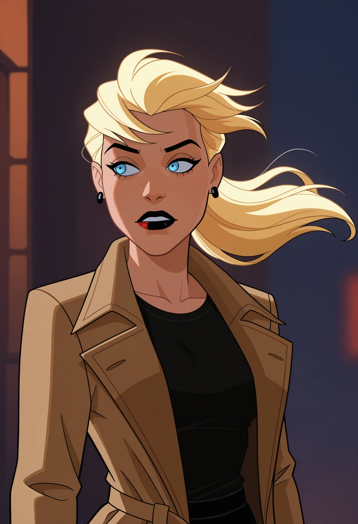 NM_TNBA_Harley_main, 1girl, solo, breasts, blue eyes, blonde hair, short hair, twintails, short twintails, hair tie, breasts, medium breasts, lipstick, black lips,