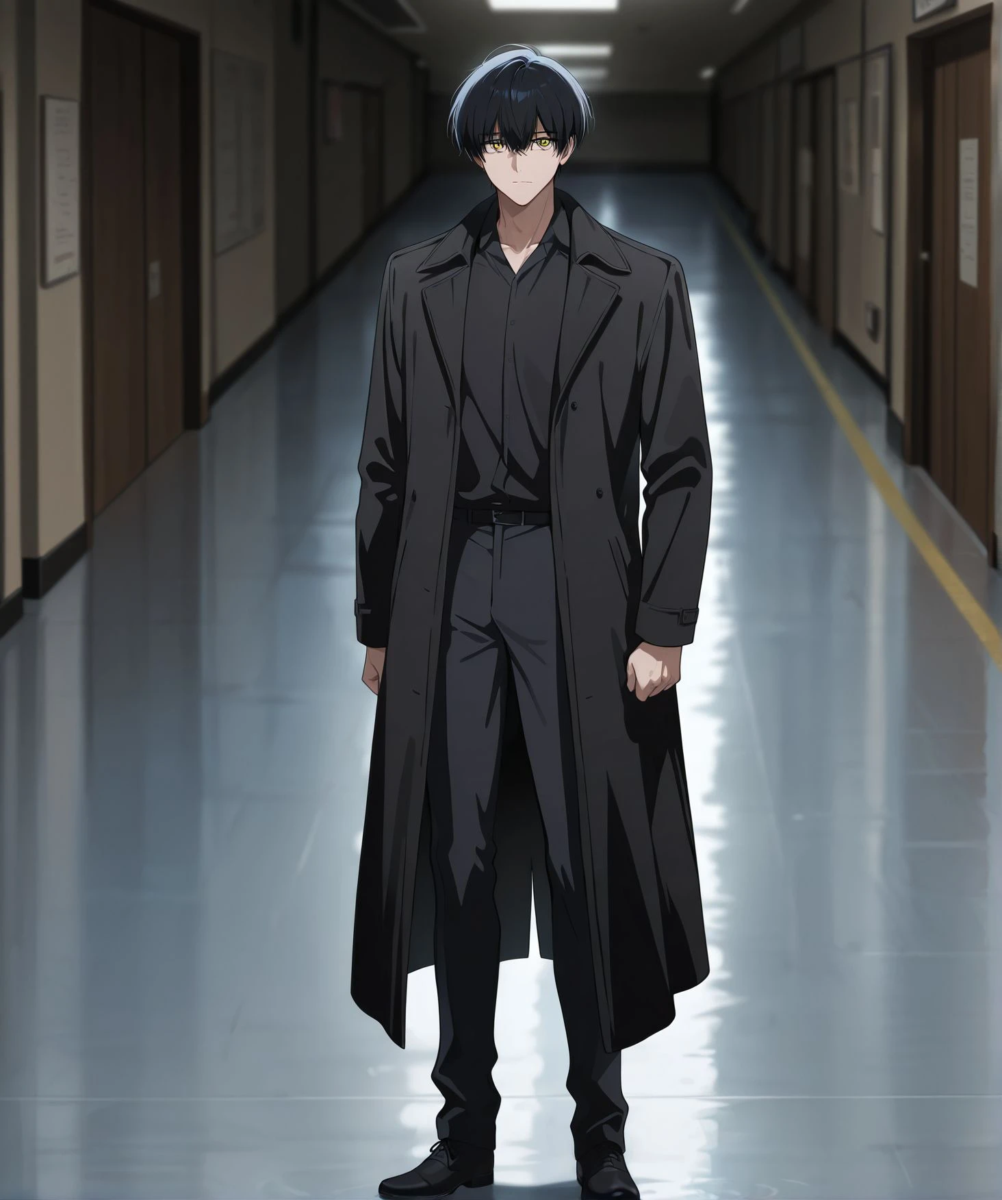 1boy,male focus, yellow eyes, black hiar, m_yodaka,bangs,
