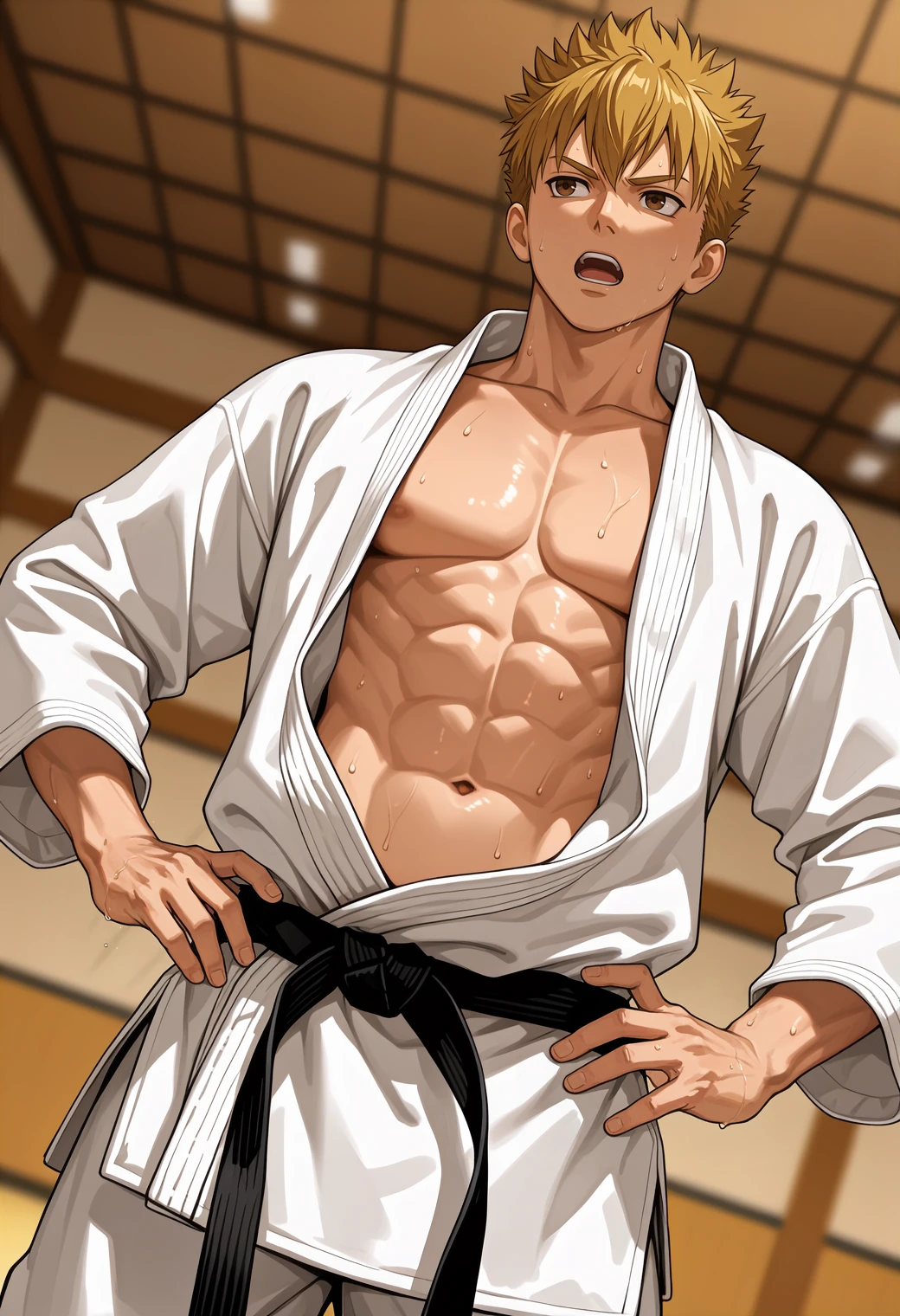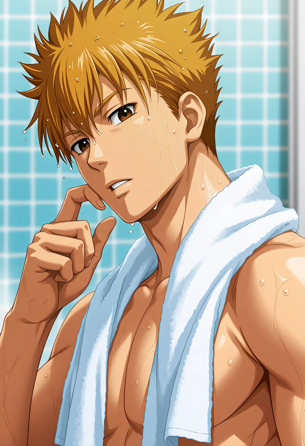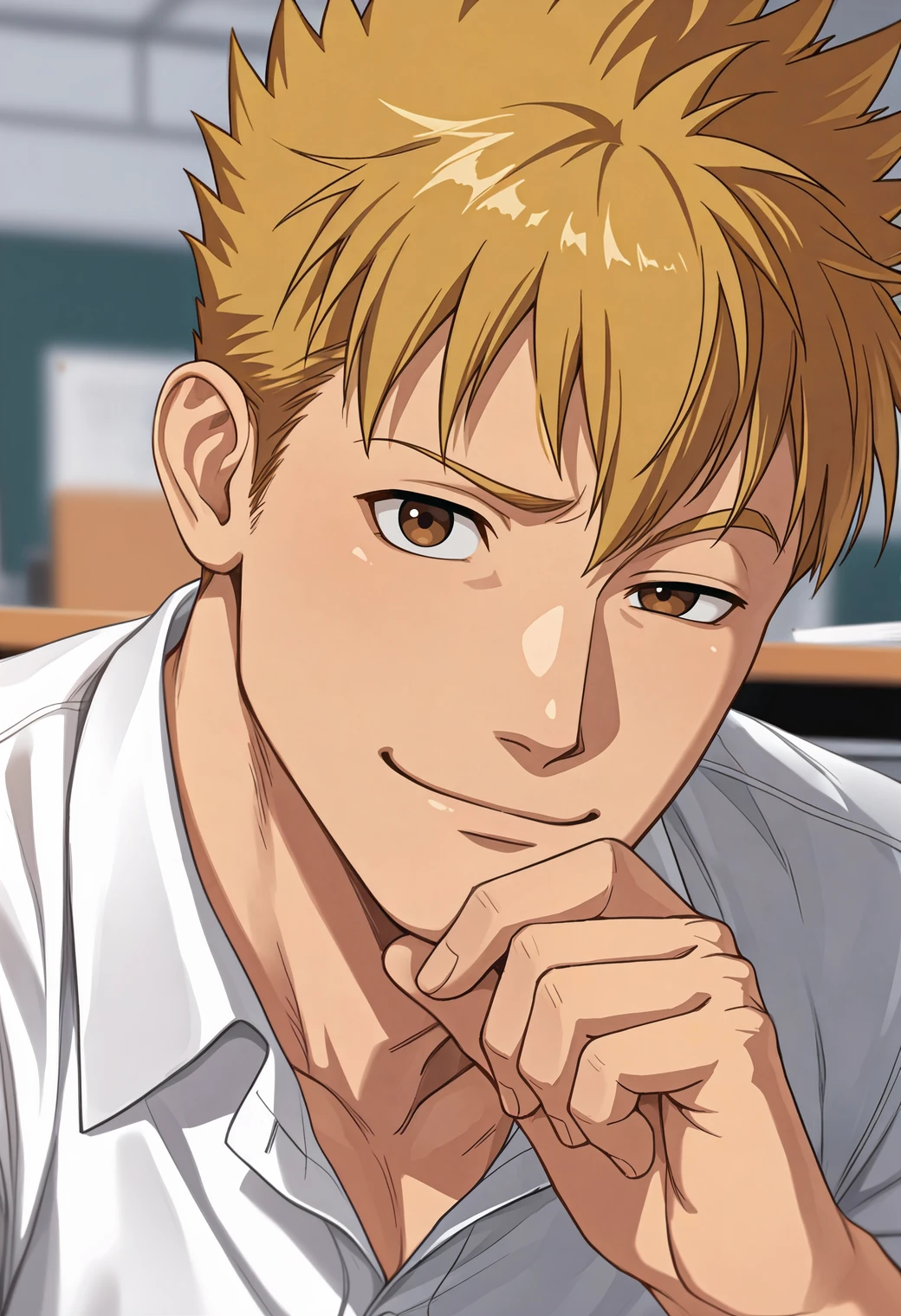 f4r4sh1,blonde hair,short hair,spiked hair,brown eyes,Auxiliary Tags: