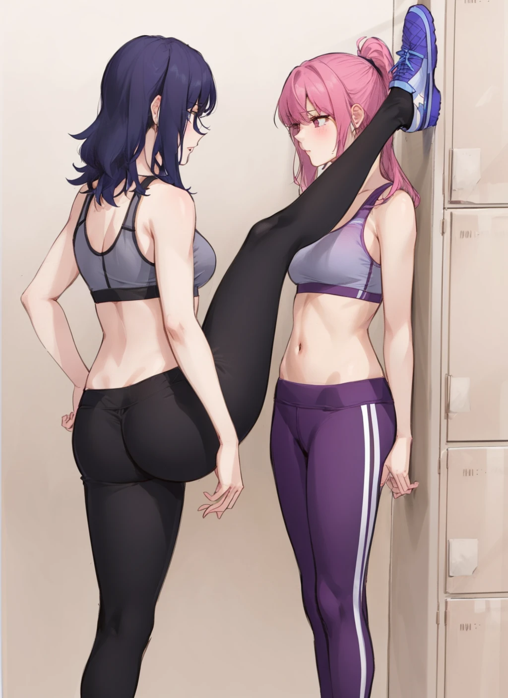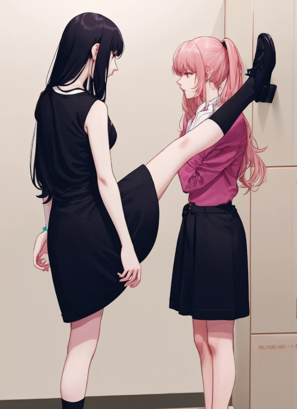 Trigger word: footkabedon, 2girls/2boys, standing on one leg