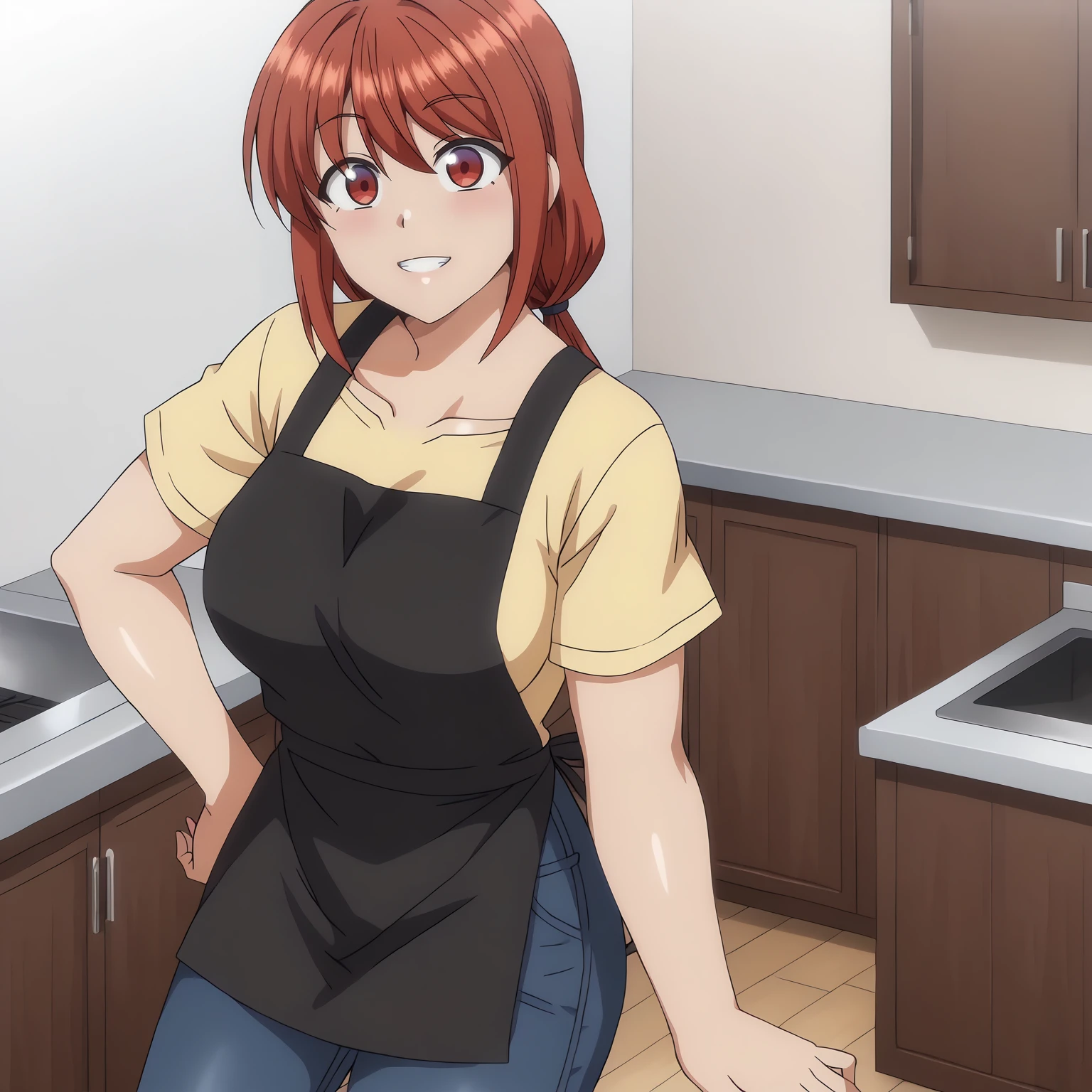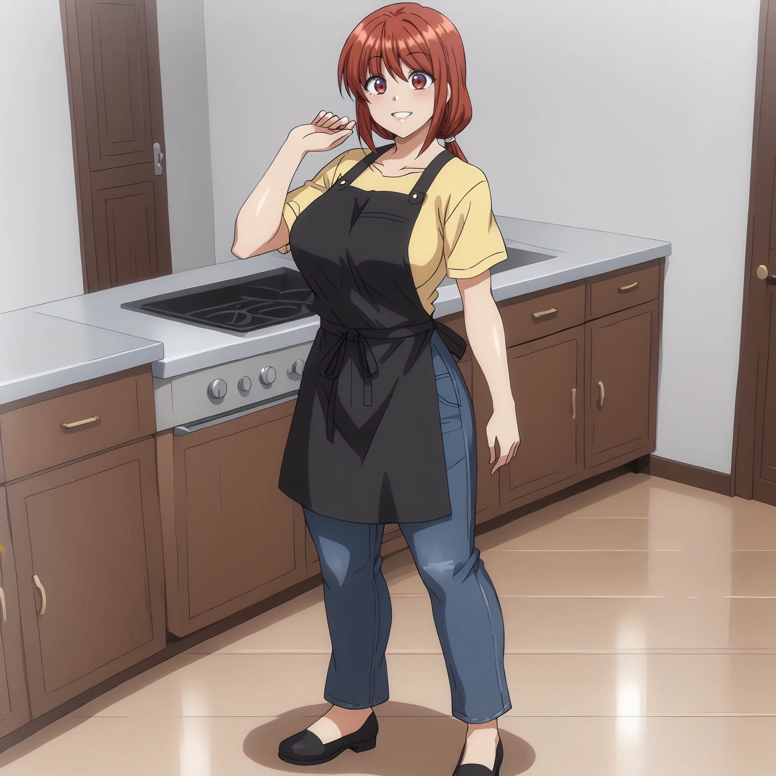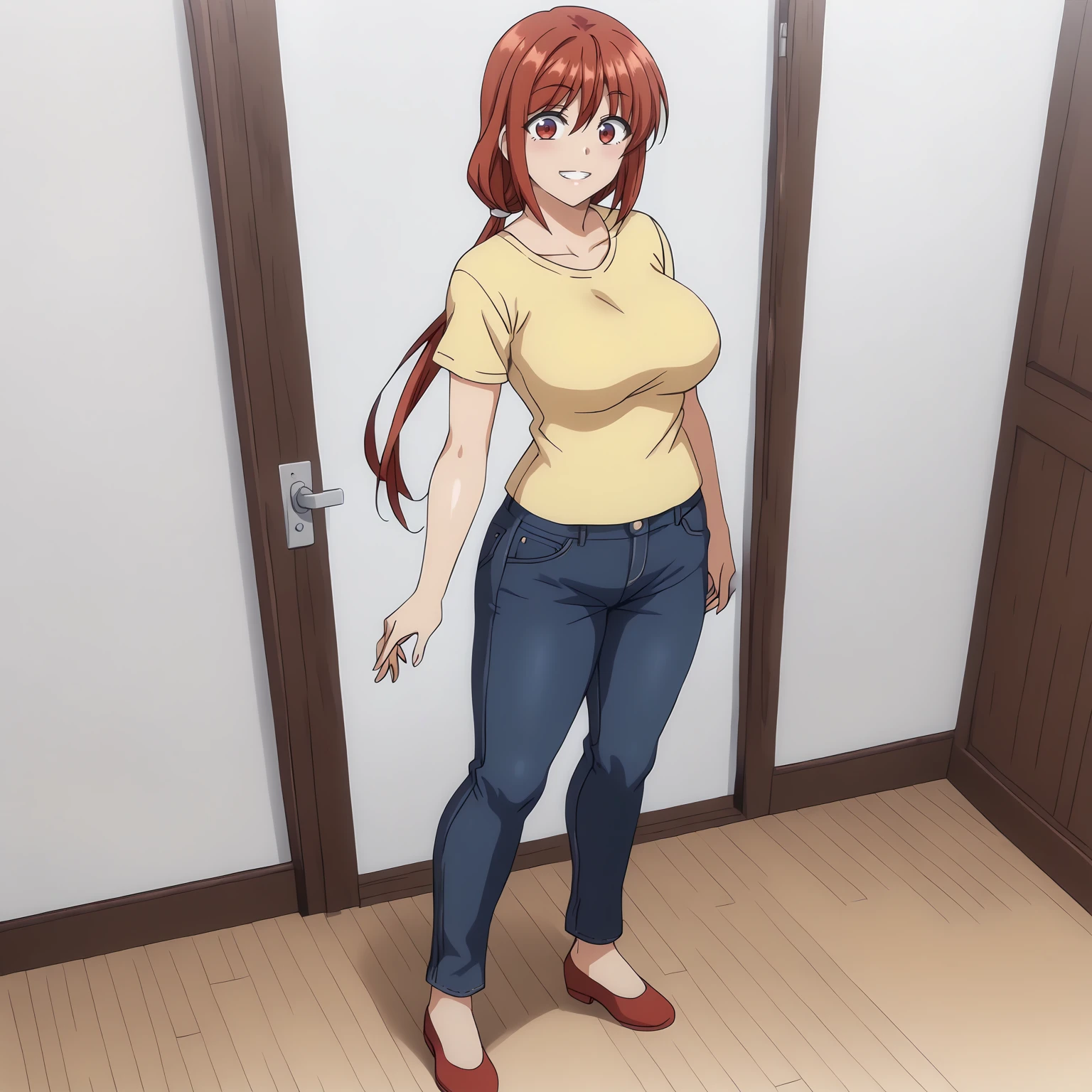 NatsumiObata,1girl,red hair,low ponytail,red eyes, large breasts,